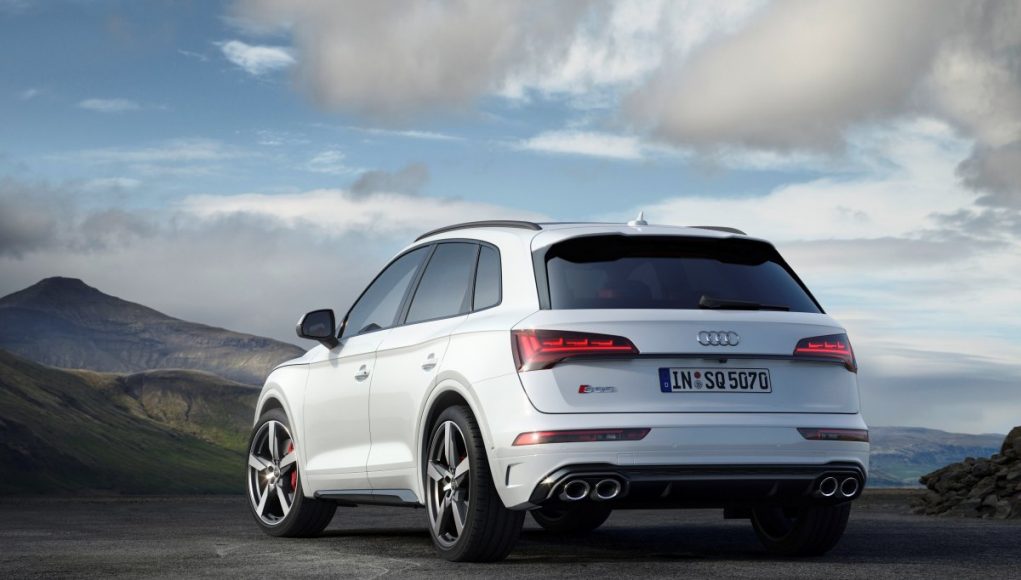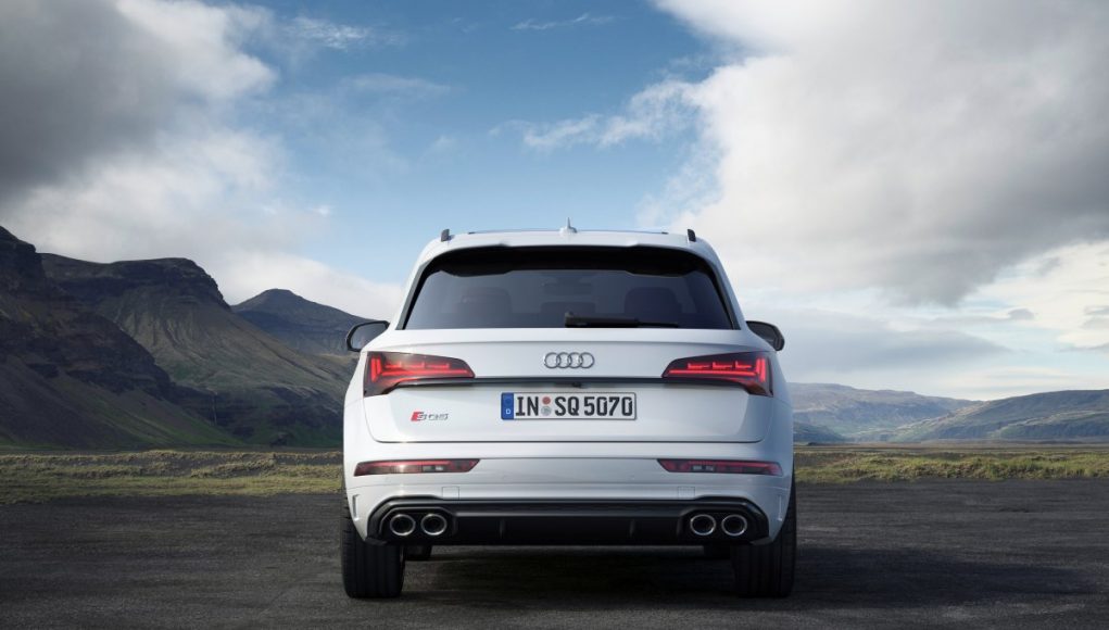 De serie, el SQ5 TDI equipa los faros Matrix LED con luces largas automáticas e intermitentes dinámicos. En la zaga, el paragolpes cuenta con una inserción en aluminio mate, debajo de la cual se encuentra el difusor y las cuatro salidas de escape cromadas con forma ovalada. Los clientes pueden elegir entre nueve acabados de pintura para la carrocería. Bajo pedido se ofrece el paquete de estilo negro, que acentúa el carácter deportivo.
