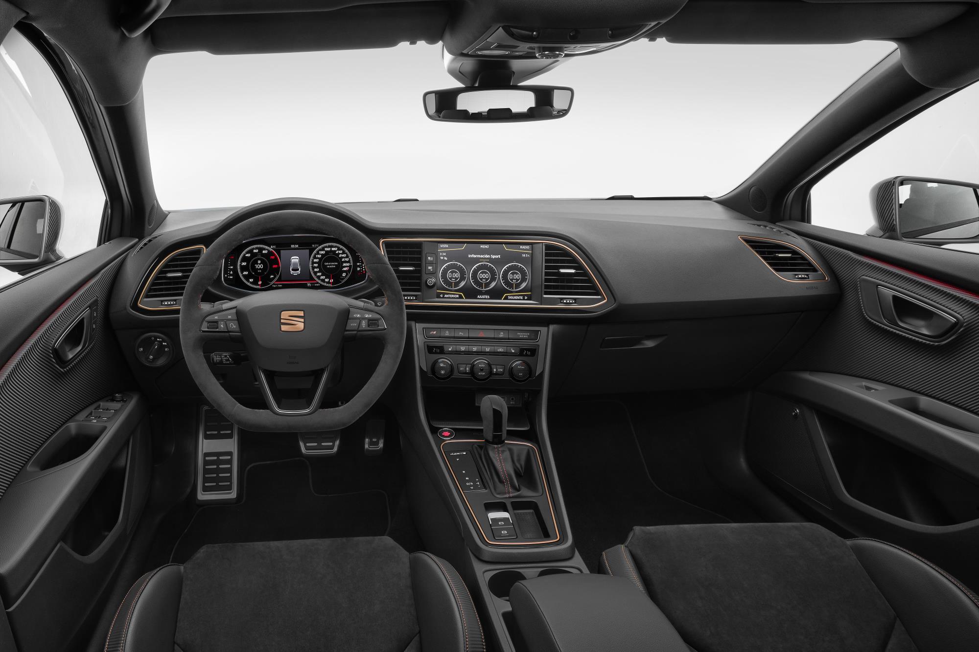 Asimismo, se ha reajustado el sistema de Dirección Progresiva para acentuar las sensaciones deportivas, mientras que el sistema de frenos está firmado por Brembo. También tiene un nuevo sistema de escape y monta neumáticos deportivos Michelin Pilot Sport Cup 2. Por su parte, y como es habitual en los CUPRA, incorpora la modalidad específica ‘CUPRA’ entre los modos de conducción del SEAT Drive Profile –Comfort, Sport, CUPRA e Individual–, que configuran unos parámetros predefinidos del comportamiento del motor, el DSG, la dirección, el sonido y el DCC, y que en el modo ‘Individual’, el conductor podrá modificar a su gusto.