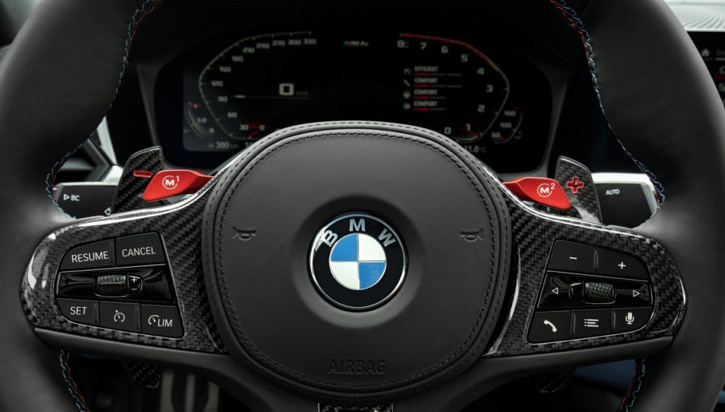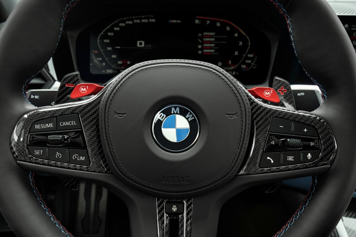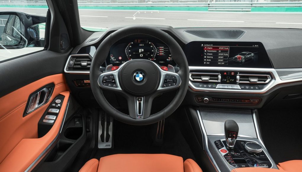 Sistema de infoentretenimiento y mandos específicos M, con botón Setup de acceso directo a las configuraciones de motor, chasis, dirección y sistema de frenos; además, según modelo y especificación, también al M xDrive y al control de tracción. Desde los botones M del volante se pueden activar dos configuraciones generales personalizables.