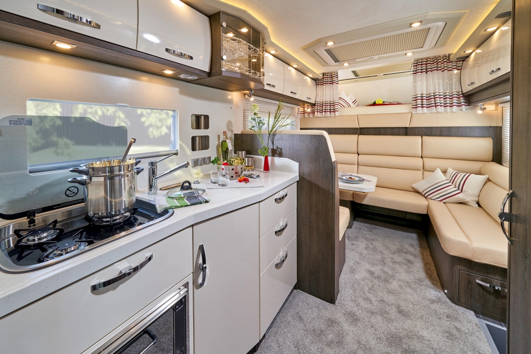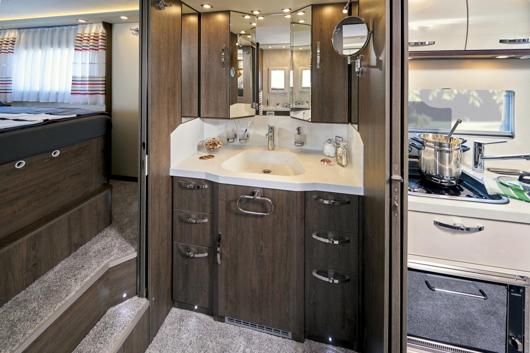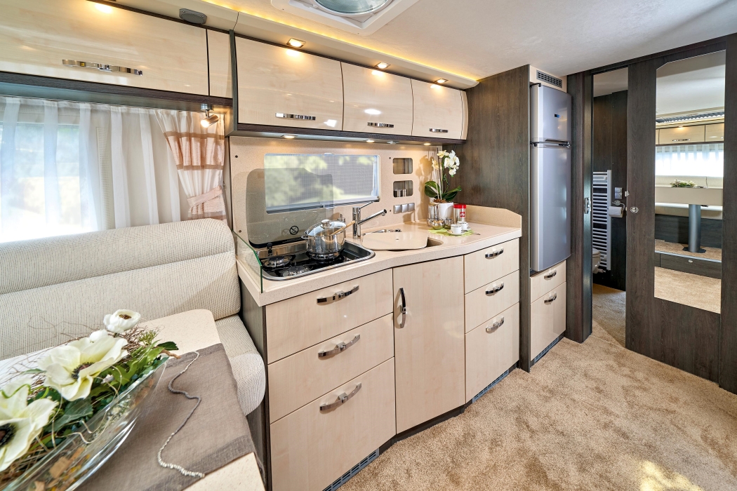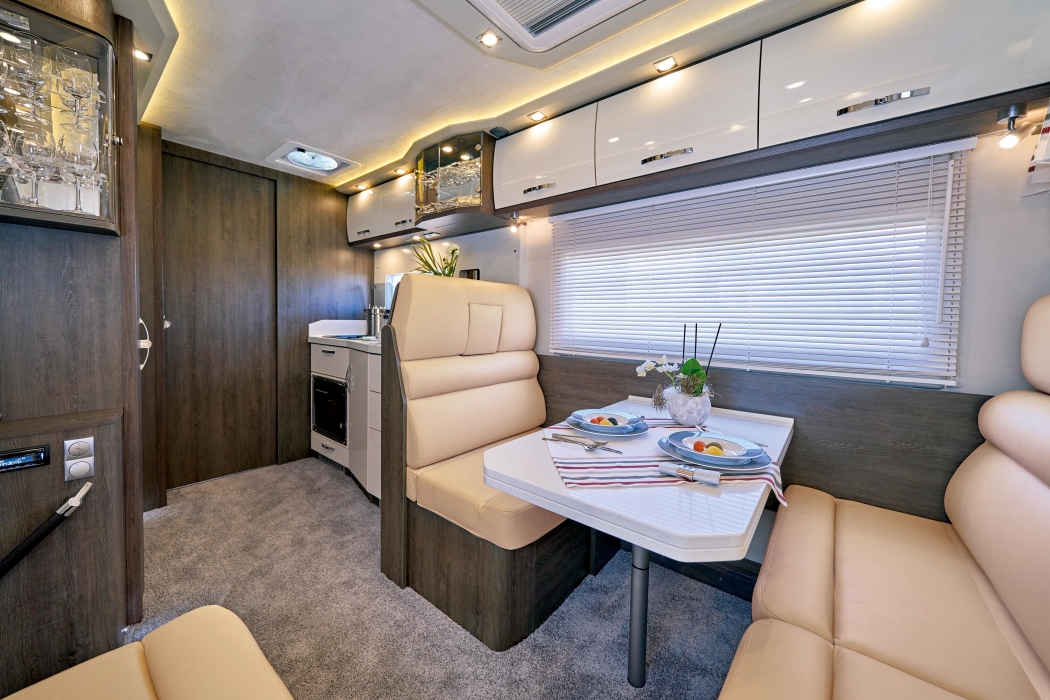Adentrarse en las autocaravanas PhoeniX es como hacerlo en un apartamento de lujo, con las proporciones contenidas de una vivienda móvil. Tanto la distribución como el diseño interior están pensados para que la vida interior sea lo más parecida a la que realizaríamos en un loft a la última. La elección de materiales nobles hace de su decoración un punto clave, con especial mención a la denominada Holm Oak, un contraste exquisito de madera oscura con detalles cromados que se pueden combinar con tonos blancos para el toque definitivo. También encontramos acabados en ámbar, mármol y un sinfín de tonos a maridar al gusto del propietario.