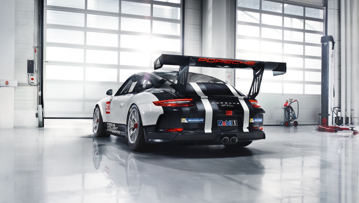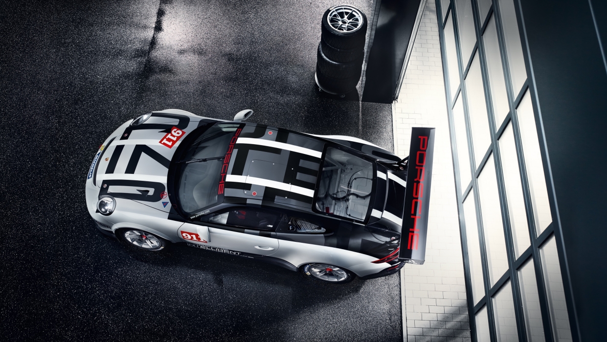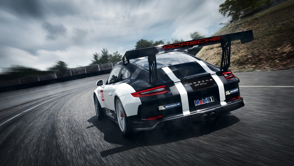 El Porsche 911 GT3 Cup es un auténtico GT de altísimas prestaciones, desarrollado al extremo por los ingenieros especialistas en competición de Porsche Motorsport con el objetivo de formar a los mejores pilotos del mundo. La versión de competición vigente corresponde a la séptima generación del Porsche 911, la serie 991, y está en activo desde 2017. De la estética exterior cabe destacar lo acentuado de los pasos de rueda, que han sido ligeramente sobredimensionados, así como los aditamentos aerodinámicos originales del modelo de competición, como el faldón delantero y el prominente alerón posterior de 184 centímetros de ancho, que puede regularse hasta en nueve posiciones diferentes para modificar la incidencia del aire. Los pilotos y sus ingenieros trabajan con el alerón para generar más o menos carga aerodinámica y con ello optimizar la capacidad tracción en curva rápida y, en consecuencia, tener menos velocidad punta en las rectas, eterno dilema que exige una finísima puesta a punto para encontrar el equilibrio óptimo.