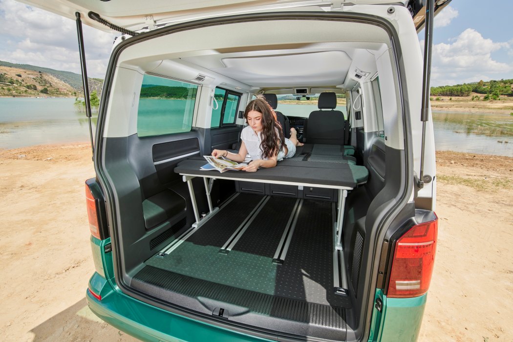 Aparte de los nuevos equipamientos del California, Volkswagen sigue siendo fiel a detalles inteligentes que hacen que este camper sea tan práctico e icónico – como la mesa de camping integrada en la puerta corredera y las sillas de camping almacenadas en el portón trasero.