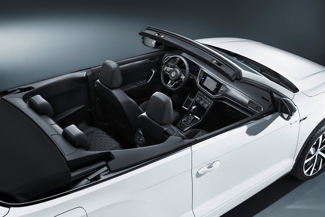 El interior de la variante descapotable conserva el diseño moderno y rompedor del T-Roc, e incluye la posibilidad de personalizarlo con inserciones de distintos colores. Sus cuatro plazas hacen que el interior sea especialmente espacioso, permitiendo a sus ocupantes disfrutar de viajes cómodos y agradables, tanto a techo descubierto como con la capota cerrada. Además, el T-Roc Cabrio equipa la última generación de sistemas de infoentretenimiento basados en la plataforma modular MIB3. El vehículo está siempre conectado gracias a la eSIM integrada en la unidad de control (OCU), que permite el acceso a un mayor número de funciones dentro del ecosistema digital «We» de Volkswagen. Entre otros, el T-Roc Cabrio dispondrá del nuevo sistema AppConnect inalámbrico, que permite al conductor conectar sus dispositivos al sistema de infoentretenimiento nada más entrar en el vehículo, sin necesidad de cables. El acabado superior R-Line cuenta además con una interfaz para smartphones con carga inalámbrica de serie.