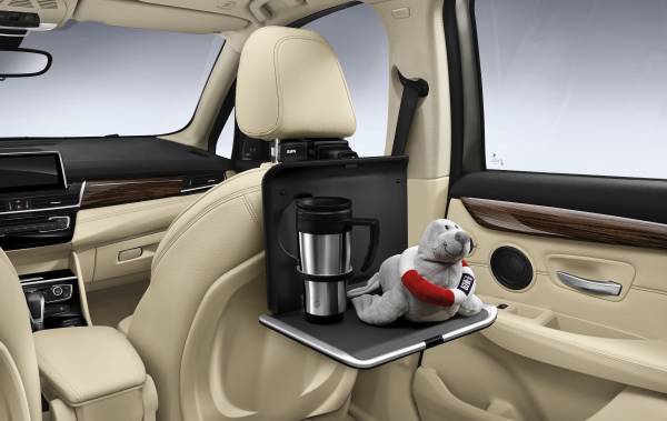 El sistema modular BMW Travel & Comfort aumenta el placer de viajar y la comodidad dentro del coche. Mediante un conector, este sistema permite fijar de forma segura distintos componentes del sistema a una base, que se monta en las barras de los reposacabezas de los asientos delanteros. Hay, por ejemplo, un soporte para distintas tablets Apple iPad y Samsung Galaxy. El soporte puede moverse, ajustarse en ángulo y rotar 360 grados, lo que resulta conveniente para ver películas en formato vertical o apaisado e ideal para trabajo de oficina. Si se quiere, también se puede adaptar una mesa plegable, que se ajusta en altura e inclinación y tiene un soporte para bebida integrado, así como también un perchero o un gancho universal.