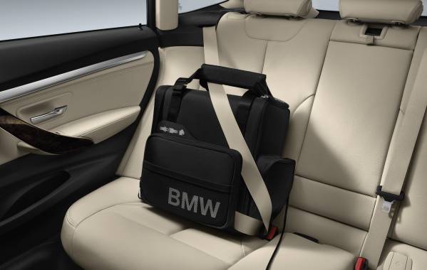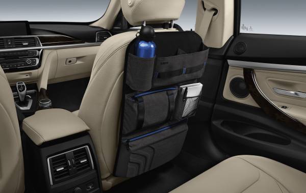 El multifacético espacio de almacenaje ofrecido por las bolsas de transporte y almacenaje BMW, que destacan por su fijación segura y simple, alta calidad y máxima funcionalidad. Por ejemplo, la bolsa de respaldo BMW, que se puede colgar de los reposacabezas delanteros y asegurarse a la parte inferior de cada asiento, ofrece numerosos espacios de almacenaje y opciones adicionales como una bolsa para toallitas o botellas que se puede guardar en el soporte de botellas integrado. La bolsa de respaldo de alta calidad puede plegarse y convertirse en una práctica bolsa para usar fuera del vehículo. La bolsa de almacenamiento BMW Fond está hecha de una combinación de material de cuero. Fijada utilizando el cinturón del asiento intermedio trasero, lleva -además de un amplio espacio para pequeños objetos, como juguetes – una bolsa neceser y dos soportes para vasos integrados. Gracias a las dos manijas y a la correa integrada para llevar al hombro, la bolsa BMW Fond puede transportarse cómodamente fuera del coche.