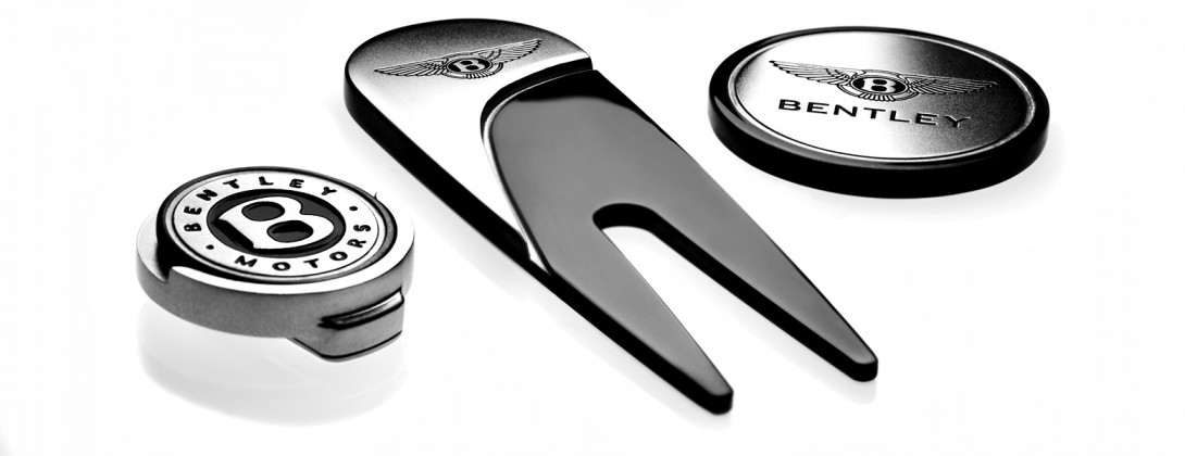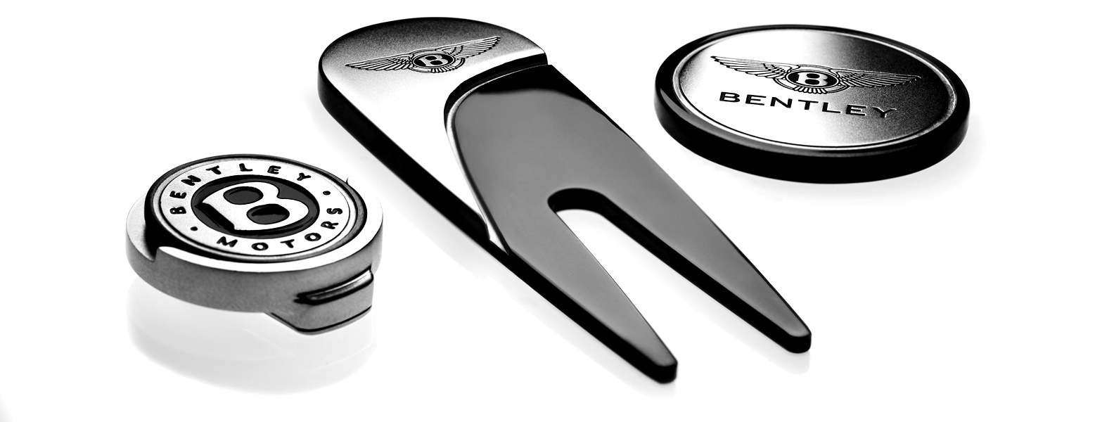 The stunning Sterling Silver Golf Ball Marker and Pitch Fork featuring Bentley knurling give an overriding feel of luxury. The six-piece Bentley Golf Ball, Leather Golf Glove, Bag Towel, Umbrella, Leather Scorecard Holder, Cap and Golf Tees, ensure Bentley luxury from the moment you step onto the course.