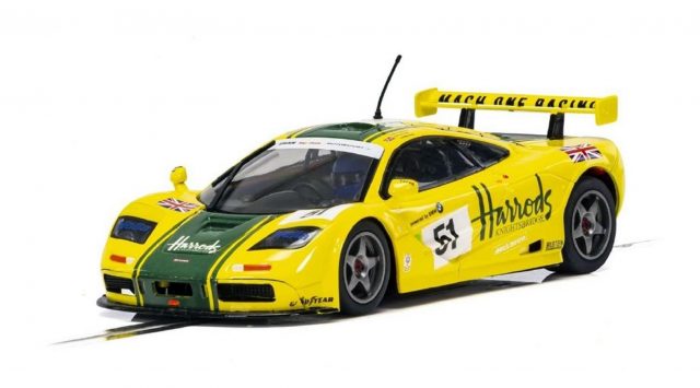 Patrocinado por los célebres almacenes londinenses Harrods, el número 51 se hizo popular por ser uno de los McLaren F1 GTR que compitieron en las 24 Horas de Le Mans en 1995, del que se hicieron cargo Andy Wallace, Derek Bell y su hijo Justin. En una época en los que los GT1 brillan más que los propios prototipos y antes de ser eclipsados por los GT3. Los resultados lo dicen todo pues acabaron subiendo al podio al terminar en la tercera posición de la general y segundos de su categoría, de la prueba francesa.