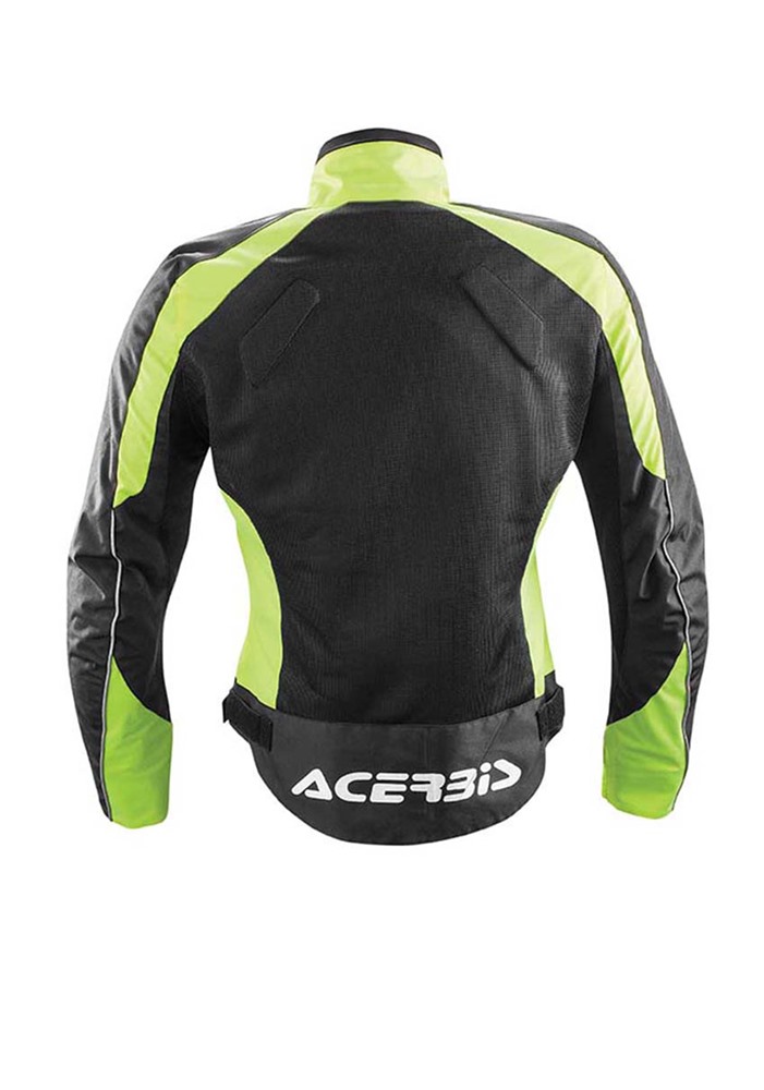 ACERBIS no olvida, naturalmente, el aspecto de protección, ofrecido con protecciones desmontables con homologación CE EN 1621-1 en codos y hombros y por el relleno de refuerzo en los omóplatos, mientras que la espalda está preparada para albergar un protector homologado de nivel 2.
