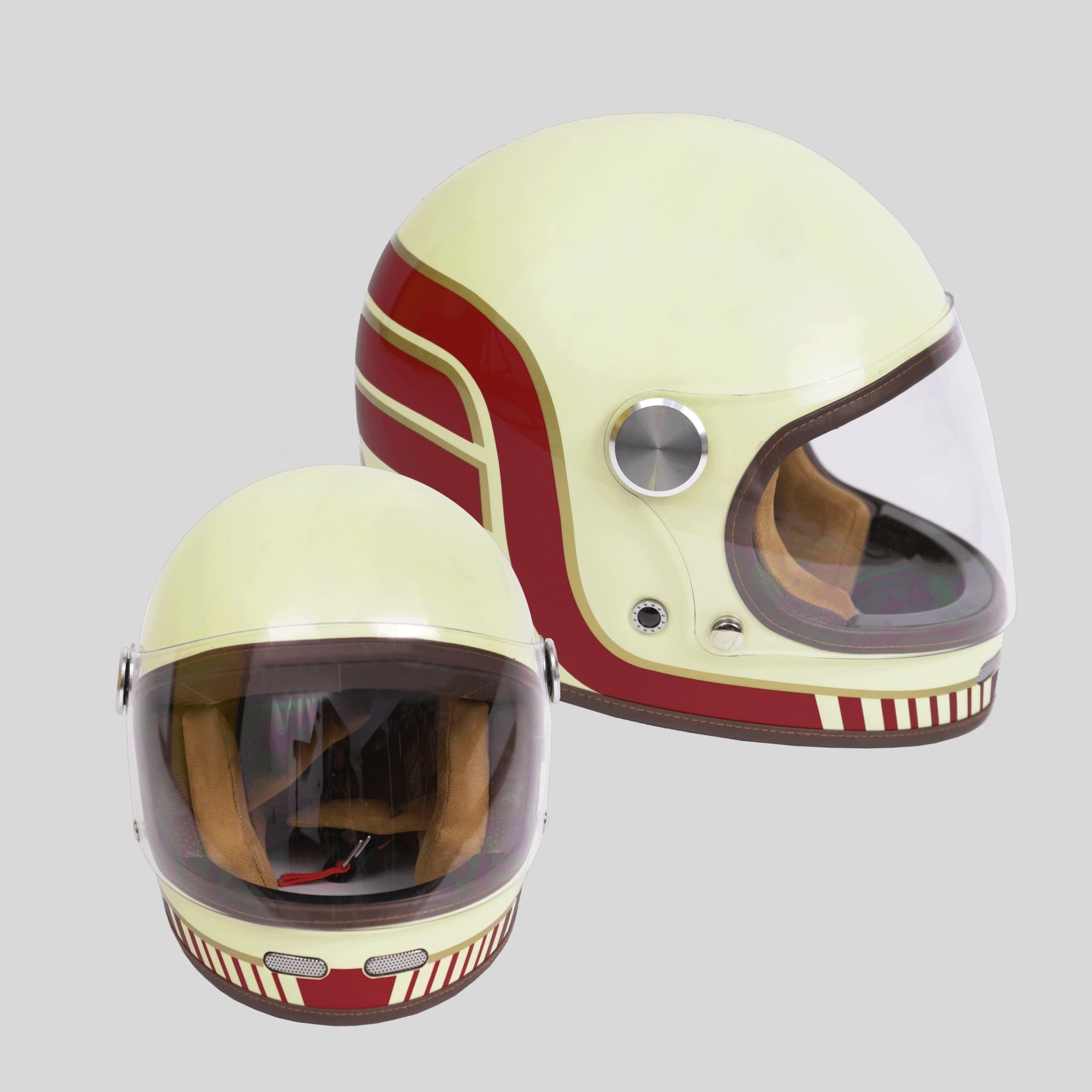 Casco integral fabricado en fibra de vidrio, con visor inyectado y entradas de ventilación. Cuenta con un cierre de doble hebilla y un interior desmontable y lavable. Incluye una sujeción trasera para la fijación de gafas. Homologación: ECE/UN R.22.06.
