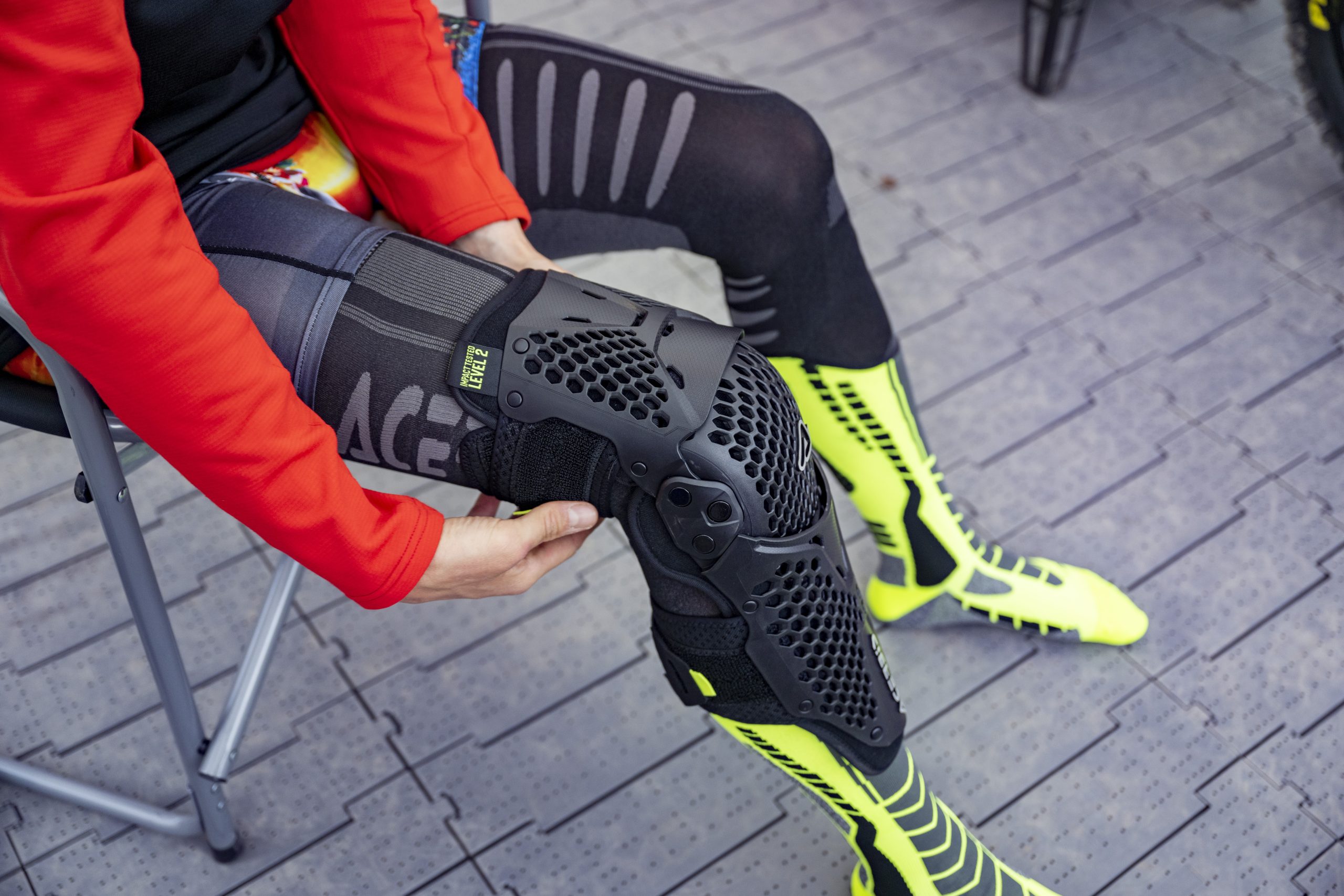 Acerbis presenta la rodillera K035 que aprovecha el innovador diseño de geometría de panal para distribuir y absorber eficazmente la energía del impacto. Ofrece un equilibrio óptimo entre ventilación, comodidad y durabilidad.