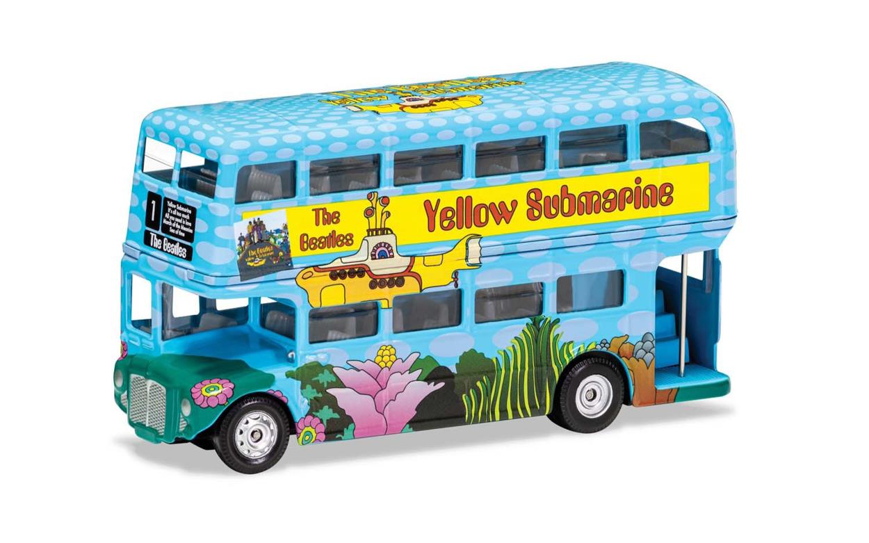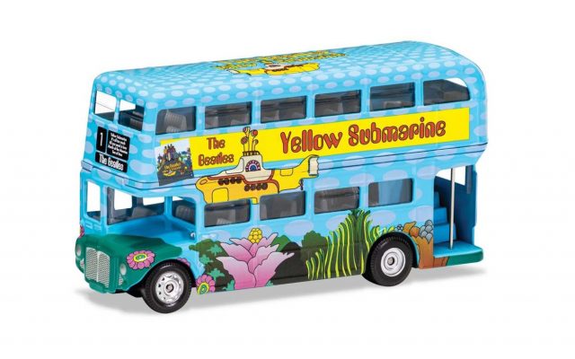 Tributo al London Bus de ‘Yelow Submarine’. Para los nostálgicos de la Beatlemanía, CORGI lanza el London Bus ‘Yelow Submarine’, una réplica a escala del autobús de dos plantas típico de la capital británica y decorada con los motivos de este aclamado álbum de The Beatles que se une al Magical Mystery Tour Bus y al Yellow Submarine de CORGI para completar una colección de lo más temática.