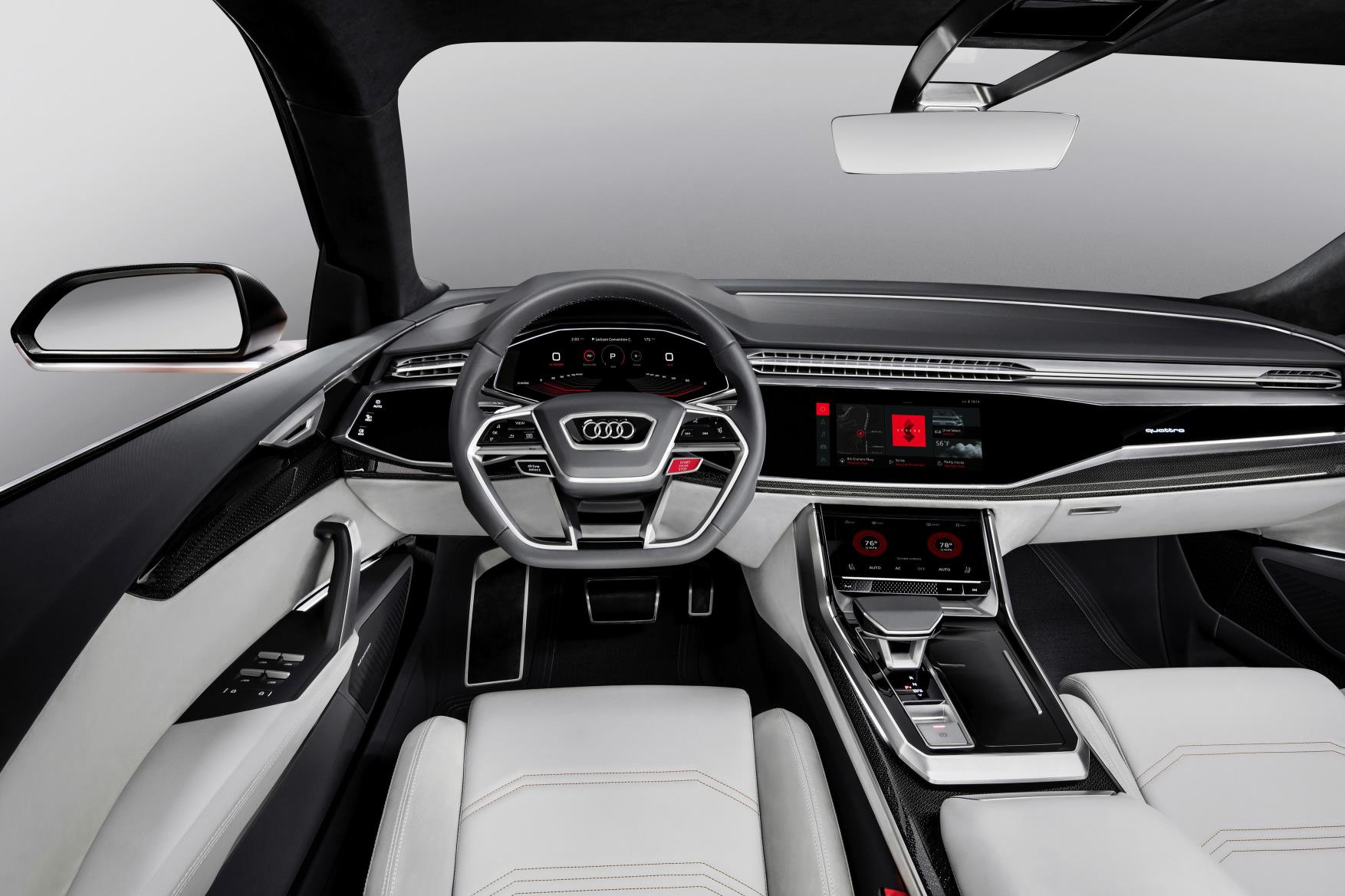 El prototipo Audi Q8 sport concept, que Audi está presentando en el Google I/O, ya lleva integrado el sistema Android a bordo. Las nuevas funciones, incluidos los servicios en streaming de Spotify, Google Play Music y Google Assistant, se pueden ejecutar en la gran pantalla táctil del MMI que está ubicada en el centro del salpicadero. La información también se puede ver en el Audi virtual cockpit, justo enfrente del campo visual directo del conductor. Esta es la primera vez que los nuevos servicios han sido completamente integrados en el sistema específico de infotainment de la marca Audi. Mientras que el mapa de navegación continúa utilizando la base de datos HERE de Audi, el conductor también puede elegir navegar con Google Maps. Un centro de mensajería para los mensajes y las llamadas entrantes completan los nuevos servicios en este concept-car.