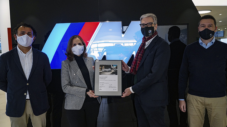 Piedad Lázaro, Directora de Servicio al cliente de BMW Ibérica, ha hecho entrega de un diploma acreditativo a César Gil, Gerente de Barcelona Premium, concesionario donde se ha formalizado el contrato BSI 10 millones.