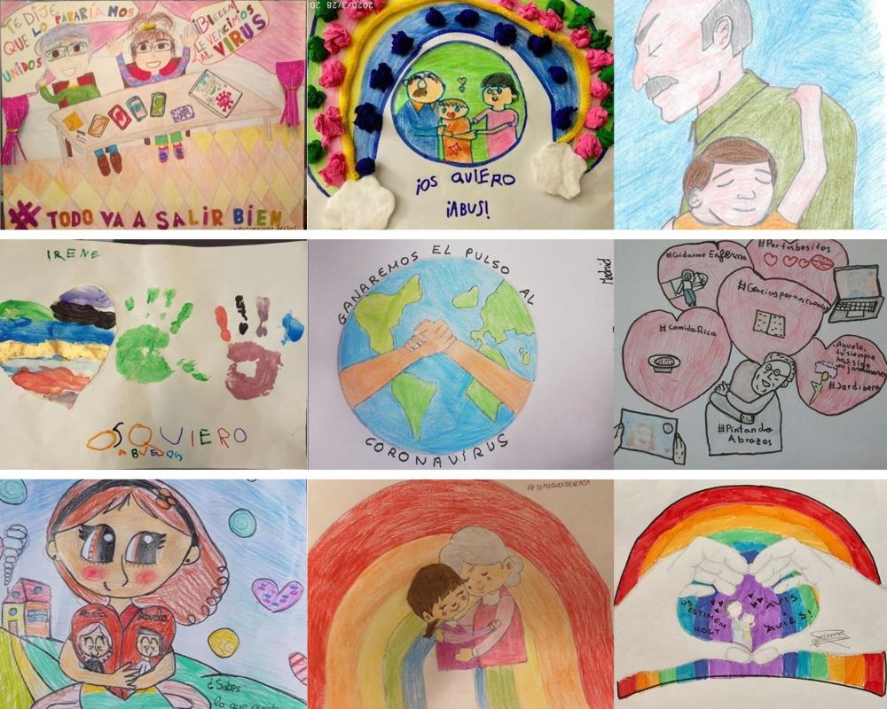 El certamen tiene como objetivo rendir homenaje a nuestros mayores a través de los dibujos de sus nietos, y anticipar en la distancia el abrazo que les darán tras estos momentos de confinamiento. Los niños han adoptado en sus pinturas la simbología de la esperanza tras el coronavirus plasmada en arcoíris y corazones con los que superar este confinamiento. Entre las historias que han plasmado los pequeños destacan las de sus abuelos en los balcones, o las de sus abuelos caminando de la mano de ellos junto a mensajes de apoyo, esperanza y ánimo como “ya queda poco para que nos volvamos a ver”, “mis abuelos son mis héroes“, o “abuelos en mi arcoíris y en mi corazón”.