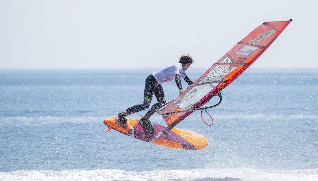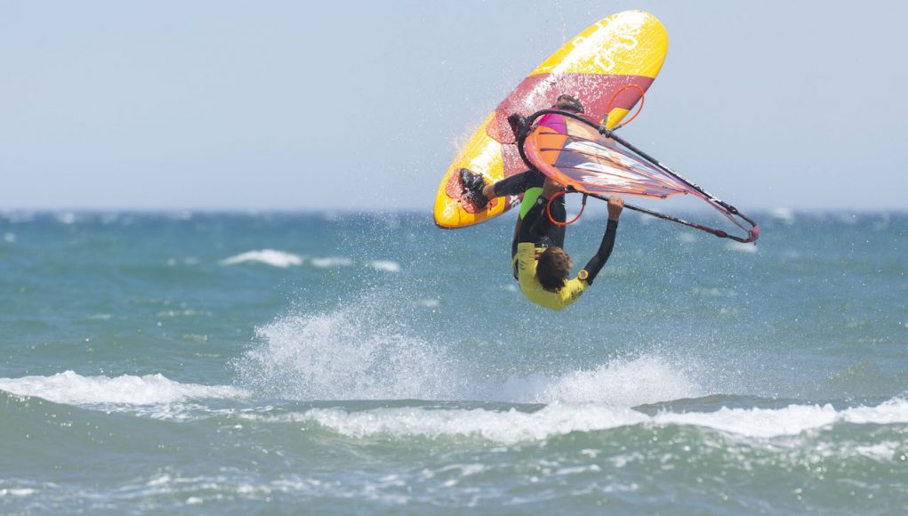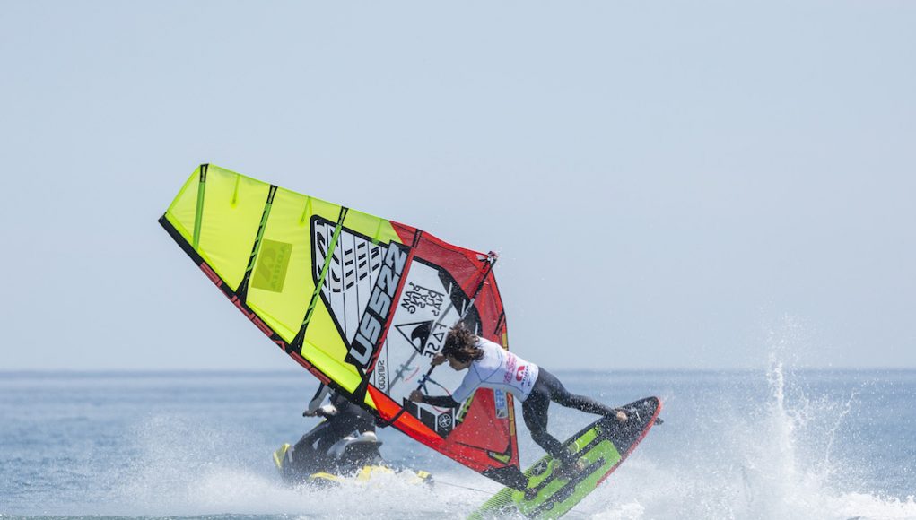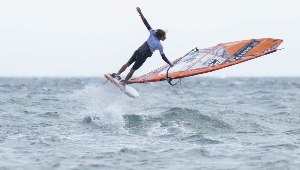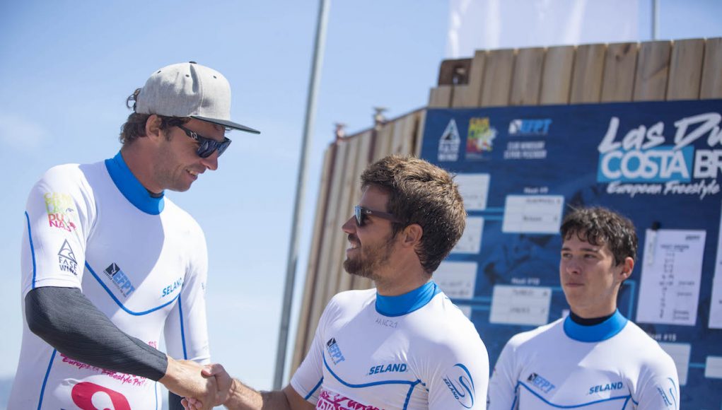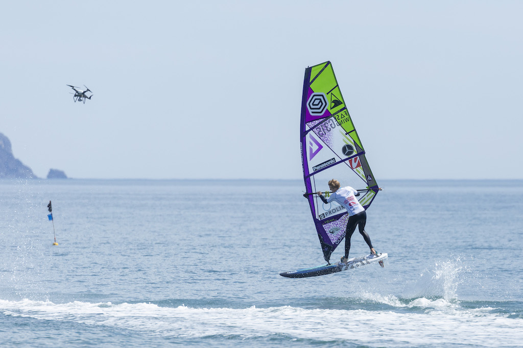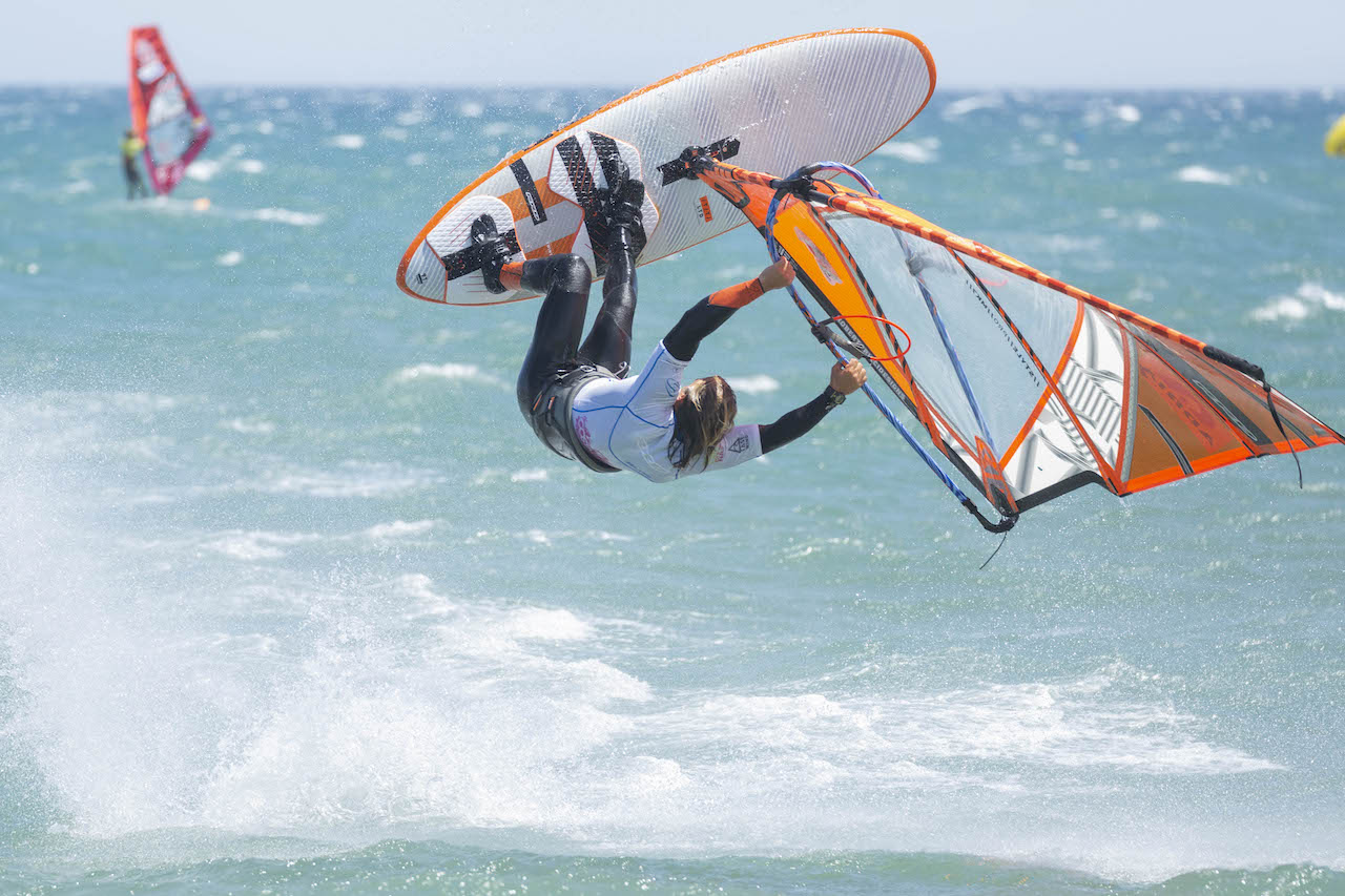 Los primeros días las dos categorías (juveniles y pros) completaron las eliminatorias en el formato de Tow-In, es decir estirados por una moto de agua y llevando a cabo los trucos a pie de playa. El resto de días el viento de fuerza, permitiendo fi nalizar dos cuadros eliminatorios enteros. Eso permitió realizar heats completos y que algunos corredores escalasen posiciones, modifi cando el top tres en el último momento. En esta edición, el belga Yentel Caers se ha llevado la primera posición, seguido del
