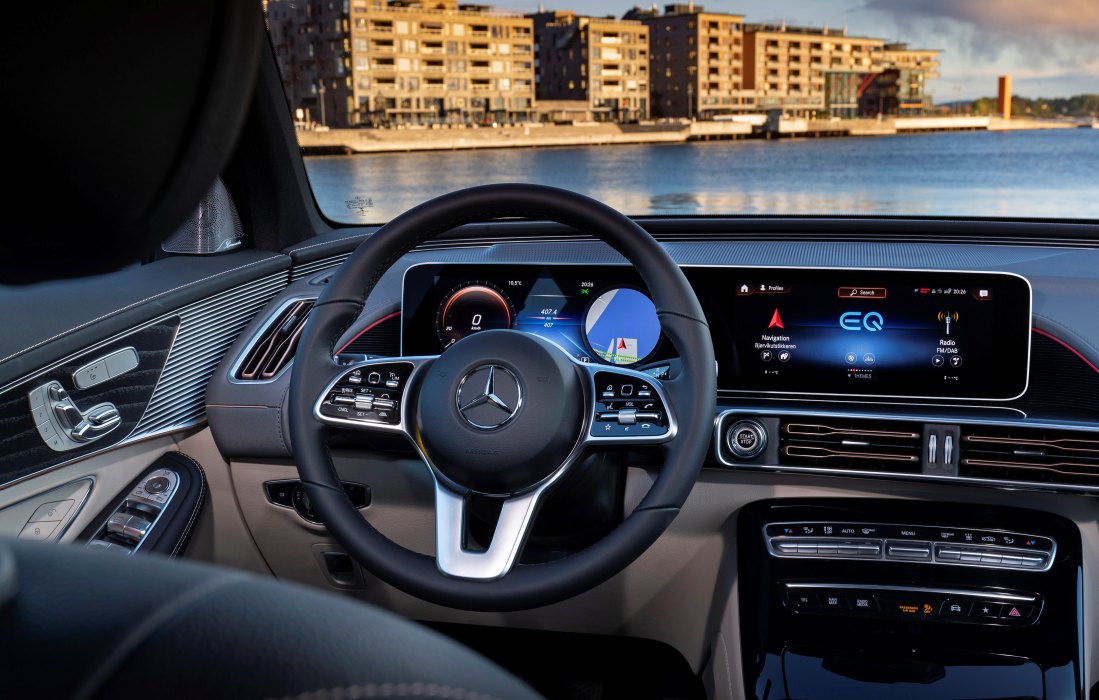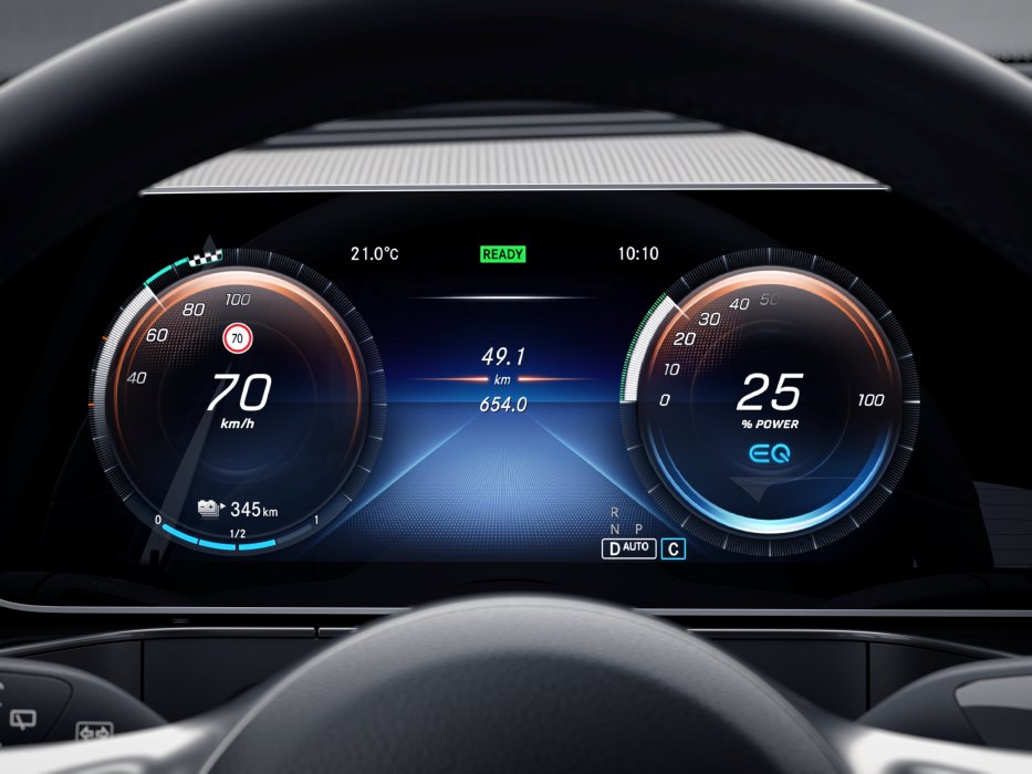 El Mercedes-Benz EQC (consumo de energía, ciclo mixto; 20,8-19,7[1] [25-22,42[2]] kWh/100 km; emisiones de CO2 ciclo mixto: 0g/km) asiste al conductor a optimizar el uso de energía mediante diferentes estrategias inteligentes. Una de ellas es el innovador pedal háptico, que informa al conductor mediante un punto de resistencia en el pedal del acelerador de cuál es el punto de acelerador máximo para optimizar el uso de la energía. Por su parte, el asistente ECO elabora en segundo plano simulaciones de las posibilidades de marcha para determinar si es mejor la marcha por inercia o retener el vehículo para recuperar la energía. El vehículo toma en cuenta la ruta y situación del tráfico y es capaz de reducir de forma anticipativa el par de propulsión si reconoce, por ejemplo, una rotonda o un vehículo circulando por delante a menor velocidad.