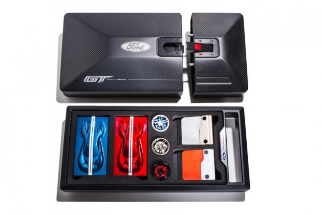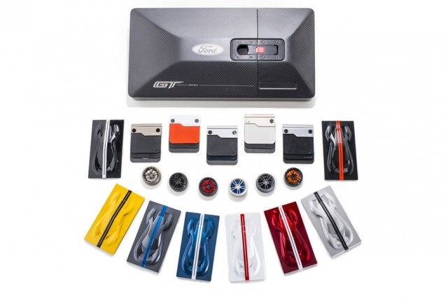 Para ayudar a los usuarios a personalizar su nuevo Ford GT, Ford Performance les va a ofrecer un kit de pedidos exclusivo. Los clientes a quienes se haya aprobado su pedido de Ford GT recibirán un kit que les permite configurar físicamente cada aspecto de su nuevo supercoche, desde el color de pintura exterior a las opciones de neumáticos, el color de las pinzas, muestras de los materiales interiores o las franjas de competición.