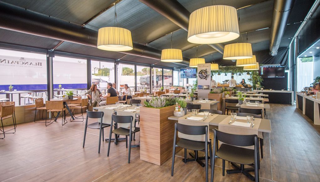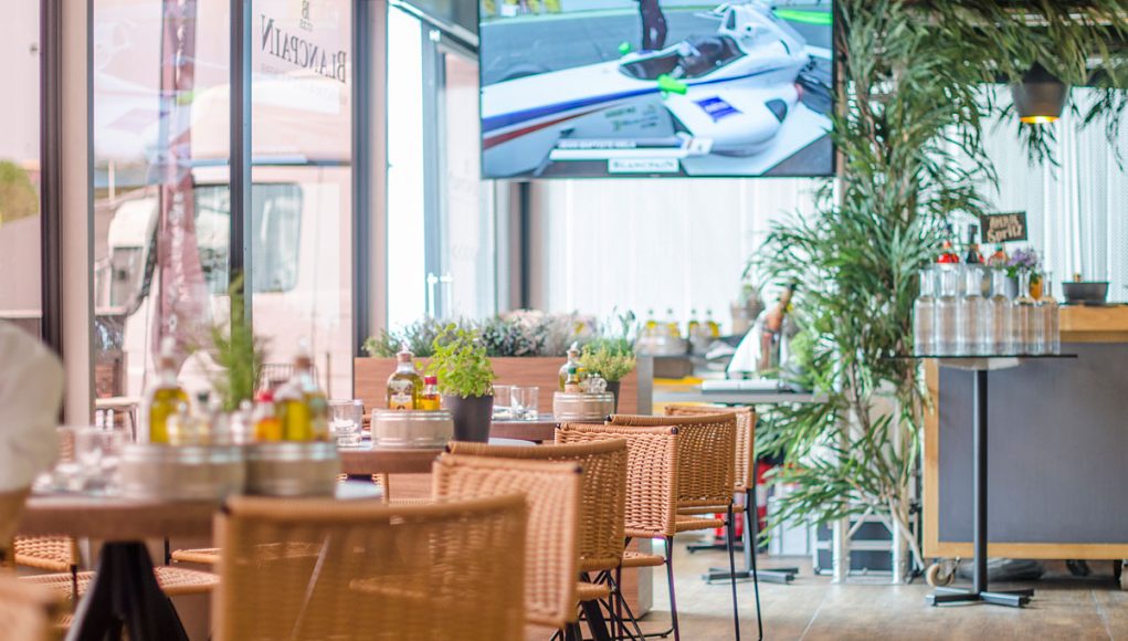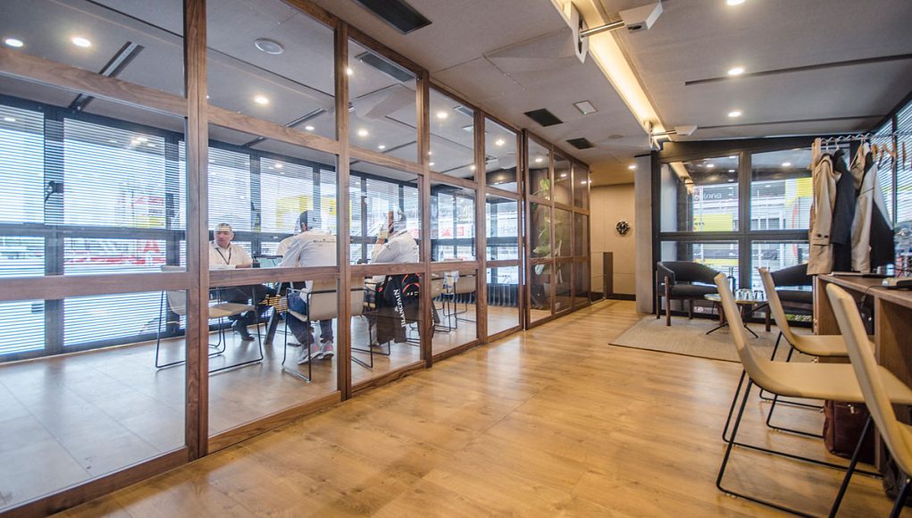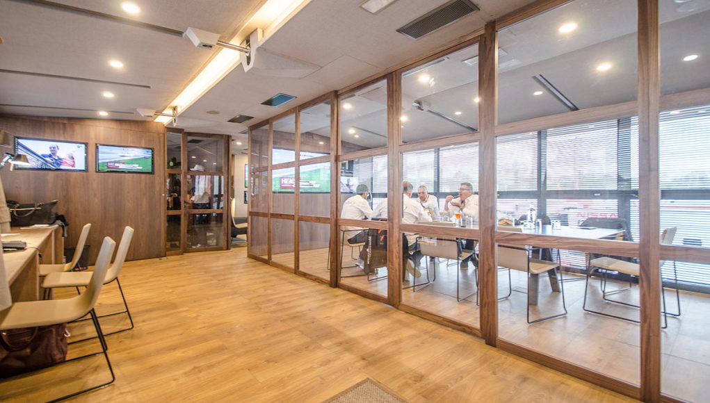 Versatilidad, comodidad y rapidez definen la oferta de Hospitality ONE. Un espacio diseñado para acoger a invitados y staff con posibilidad de convertirse en bar, restaurante o sala de reuniones/prensa en función de los requerimientos del cliente. Esta unidad de negocio ofrece una sala de juntas privada equipada con sofás, mini bar y pantallas planas, así como una cocina totalmente equipada de uso privado o por parte del equipo de profesionales de Hospitality si se contrata servicio de catering.