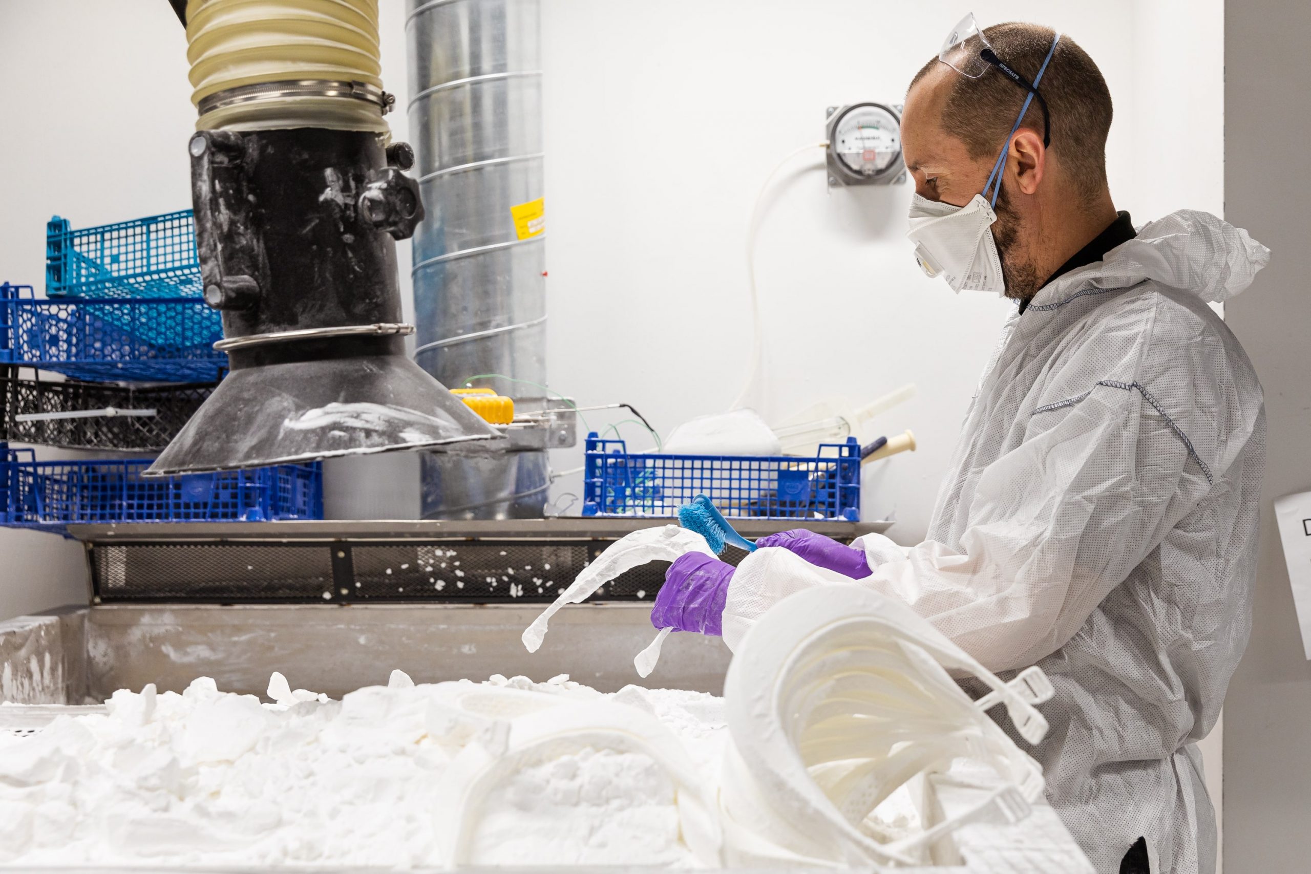 El escudo transparente está fabricado con policarbonato químicamente resistente, que es recortado por RGH Rubber Limited usando una máquina multi-corte. Creado utilizando procesos de sinterización láser, fusión a chorro y FDM de última generación, el equipo se esforzó especialmente en asegurar que la tapa de la visera pueda ser usada cómodamente y con seguridad durante muchas horas por los trabajadores sanitarios.