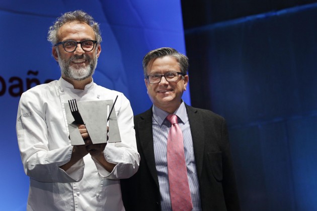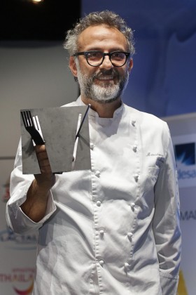 Tras llegar al Palacio de Congresos de Madrid a los mandos del buque insignia de la marca, el Chef modenés ha firmado ejemplares de su libro tras lo cual ha sido premiado como “Cocinero del año en Europa”, premio que le ha sido entregado por el presidente de Madrid Fusión, Jose Carlos Campel.
