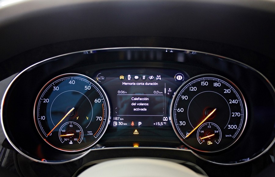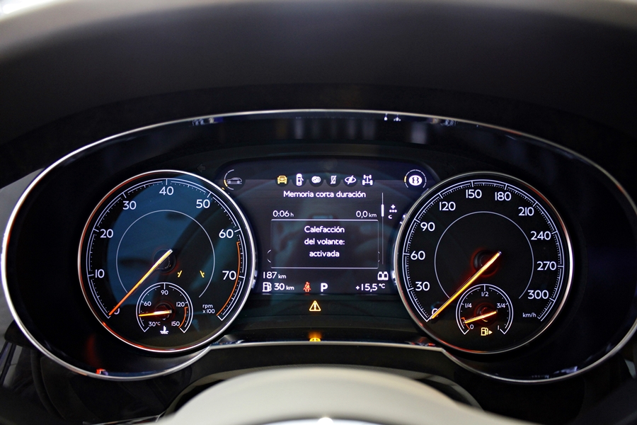 Además de ofrecer un efectivo sistema de suspensión neumática, incorpora el denominado Bentley Dynamic Ride, que adapta la rigidiez de las barras estabilizadoras para evitar los típicos balanceos en el paso por curva dadas sus medidas. Junto al selector del cambio, encontramos el selector de modos de conducción que nos permite escoger entre 8 modos diferentes, cada uno de ellos adaptado al firme por el que deseemos conducir, para sacar lo mejor del Bentayga y de su rendimiento en cada situación.