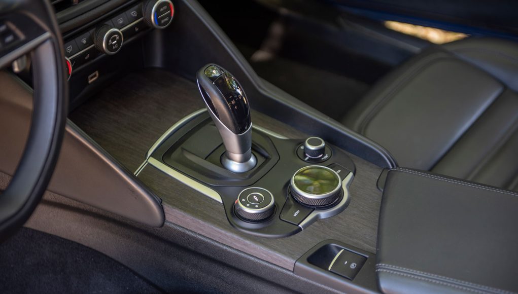 Bajo los mandos del climatizador bizona, encontramos el selector del cambio, heredado de Maserati, así como el selector de modos de conducción DNA y el mando para manejar el sistema de infoentretenimiento.