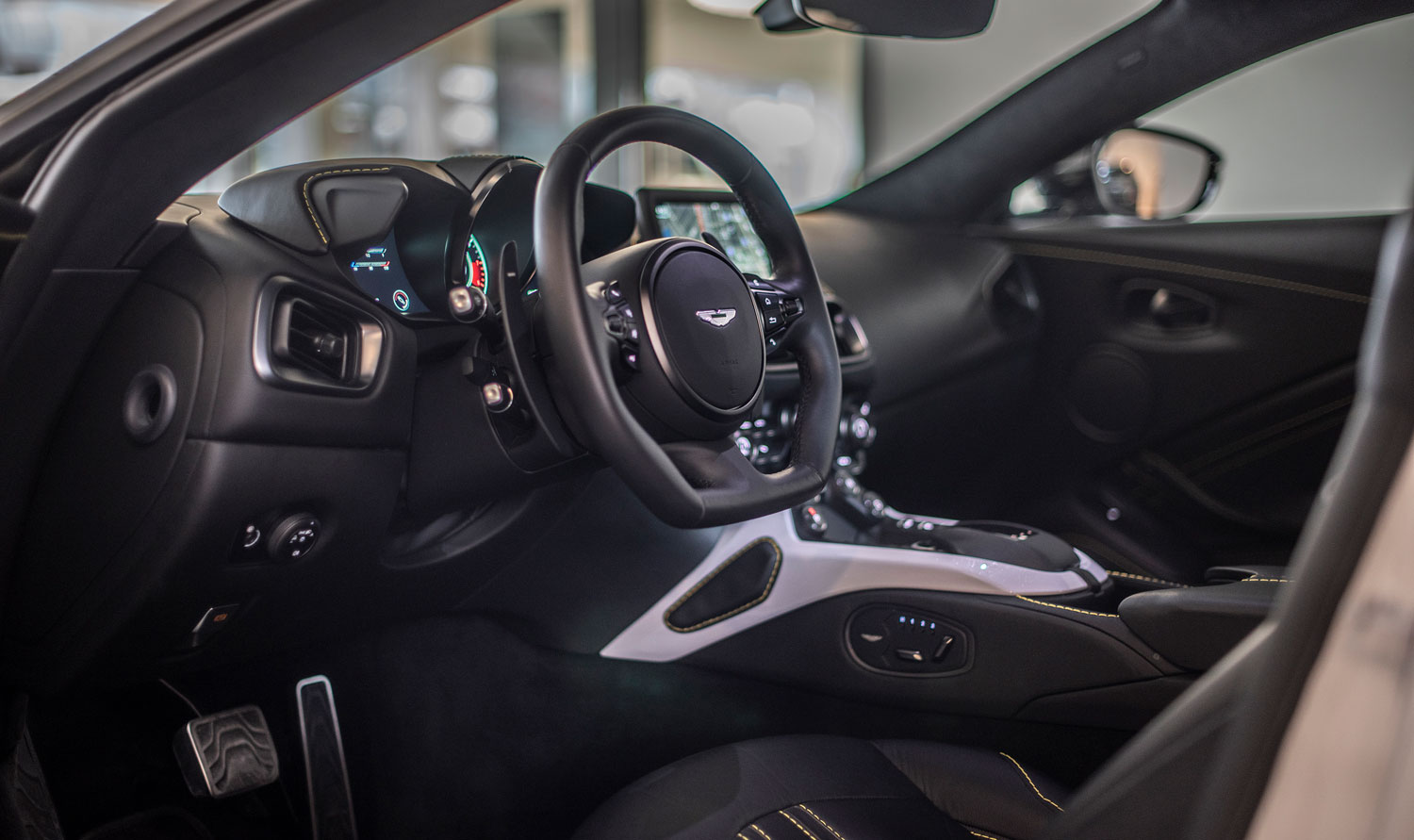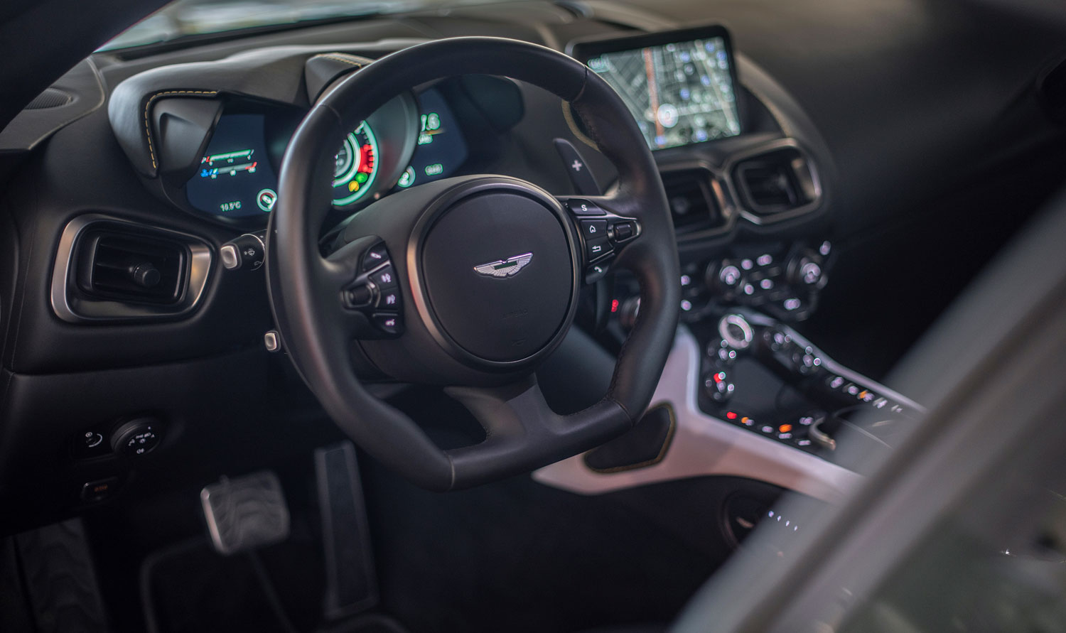 Otra de las cosas que hemos echado de menos ha sido el mítico cuadro de mandos analógico, que podíamos ver en el Vantage de antaño, con las agujas contrapuestas, que han dado paso a un cuadro totalmente digital y que el mismo utilizado tanto en el DB11 como en el DBS Superleggera.