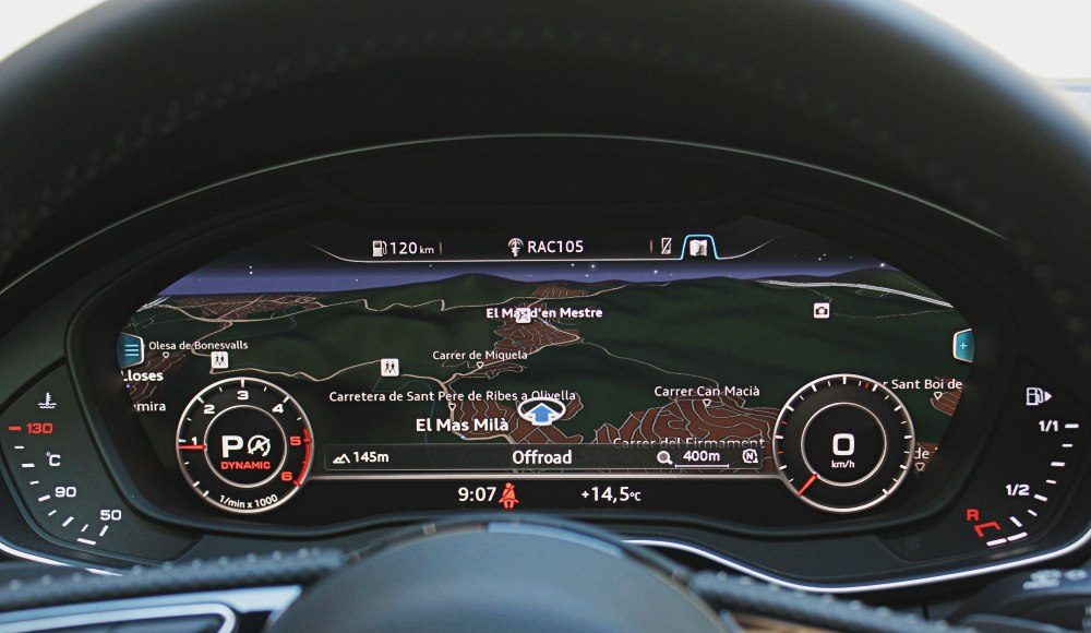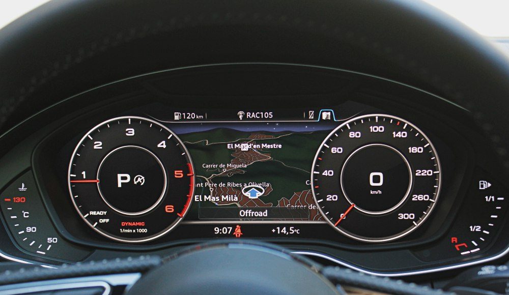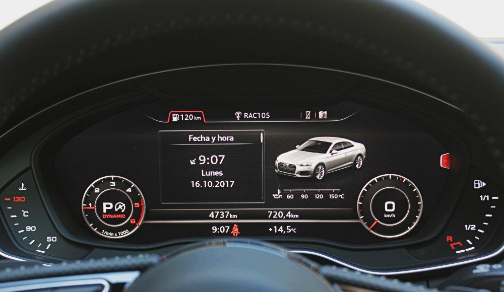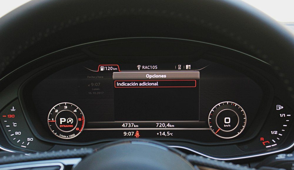 El Audi Virtual Cockpit, es sin duda alguna el mejor opcional para este coche, ya que cambia por completo el salpicadero. Como ya os hemos comentado en varias de nuestras pruebas, este sistema permite personalizar el cuadro mediante una pantalla de 12,3 pulgadas TFT, en función de la información que quieras ver representada, dando prioridad a las esferas, al sistema de navegación pudiendo ver Google Earth y Google Street View, o bien a los asistentes de conducción.