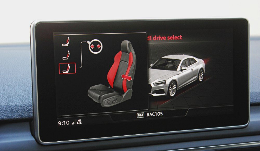Todo en el interior del A5, rezuma elegancia, diseño y calidad, que se aprecia en un habitáculo en el que todo está pensado para que los ocupantes disfruten de la experiencia sensorial de un Audi. Los asientos de corte deportivo de nuestra unidad, tapizados en piel y alcántara, sujetan el cuerpo a la perfección y disponen de un sistema de masajes.
