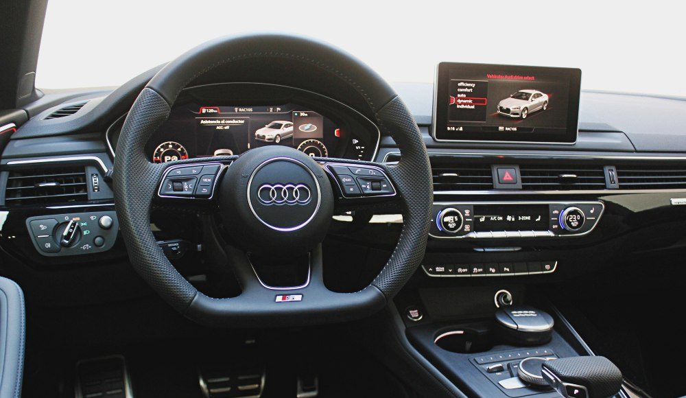 El equipamiento es un fuerte dentro de toda la gama Audi, así que nuestra unidad de pruebas, gracias a la serie S line Edition, estaba equipada con faros de xenón plus, paquete iluminación, Audi Drive Select, volante de cuero multifunción, arranque confort, control automático de velocidad, MMI navegación, Audi Connect Safety & Service, Audi parking System plus, asientos delanteros deportivos o molduras interiores en aluminio Elipse y de forma opcional los faros Audi Matrix LED, llantas de 19”, asientos deportivos S en cuero Napa Fina y regulación eléctrica, volante achatado multifunción, Audi Virtual Cockpit, MMI Navegación Plus, equipo de sonido Bang & Olufsen, Audi pone box con carga por inducción, cámara de visión trasera y el paquete de asistentes Tour que incluye control de crucero adaptativo, asistente de conducción en atascos, Audi active line assist, Audi pre sense front, reconocimiento de señales de velocidad, asistente predictivo de eficiencia y asistente de esquiva, entre otros que incrementan la factura de nuestra unidad de pruebas hasta unos generosos 61.975€.