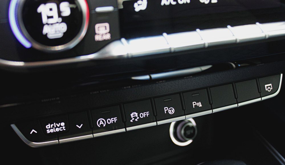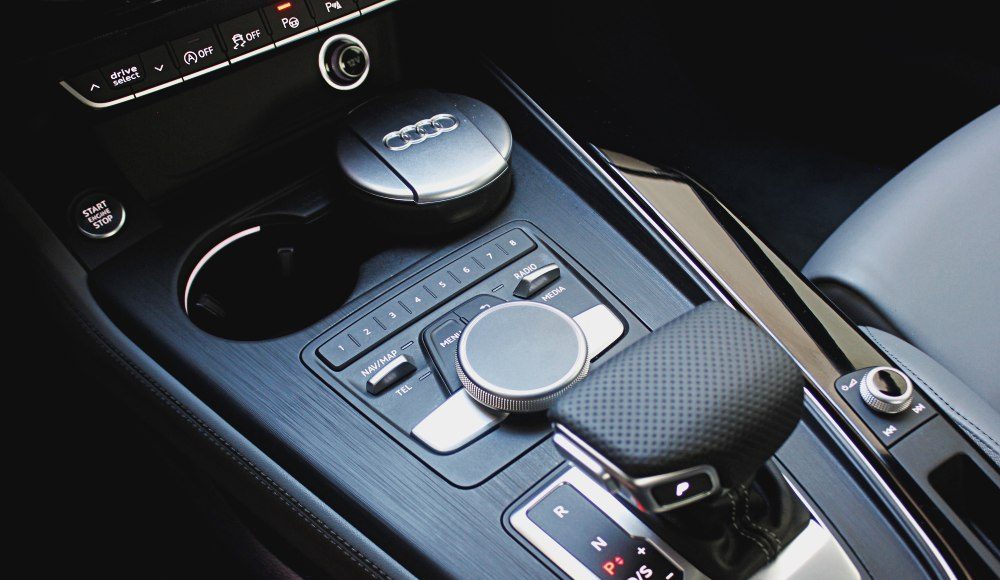 El climatizador, dispone de una botonera de aluminio táctil, y bajo este encontramos los mandos para activar al Audi Drive Select, el sistema Start/stop y el control de tracción, que nos llevan hacia el selector del cambio S tronic, donde encontramos los mandos del MMI para el manejo del sistema de infoentretenimiento.