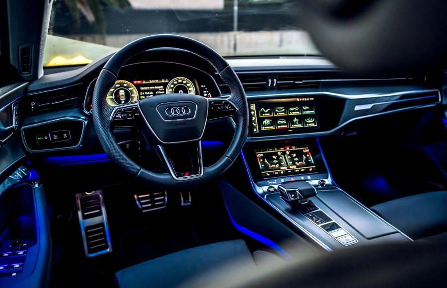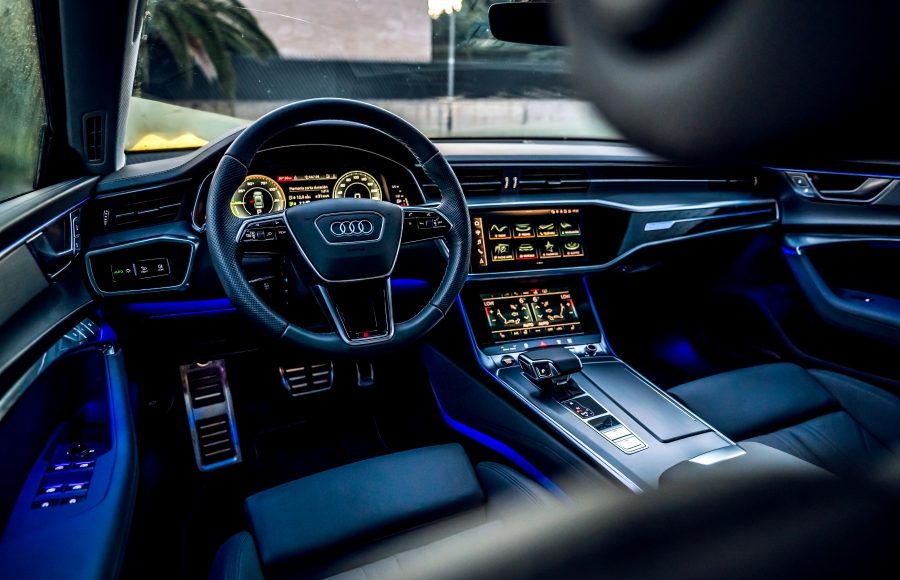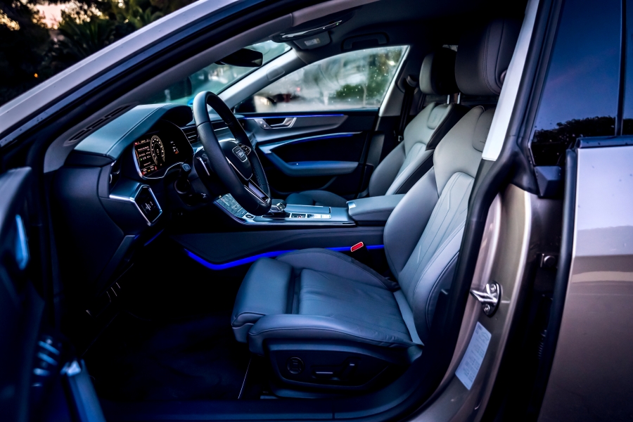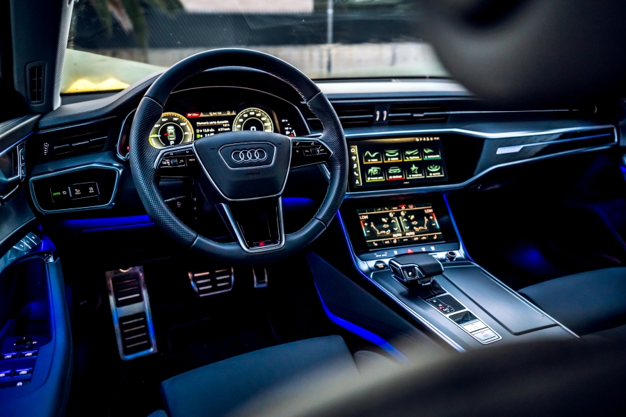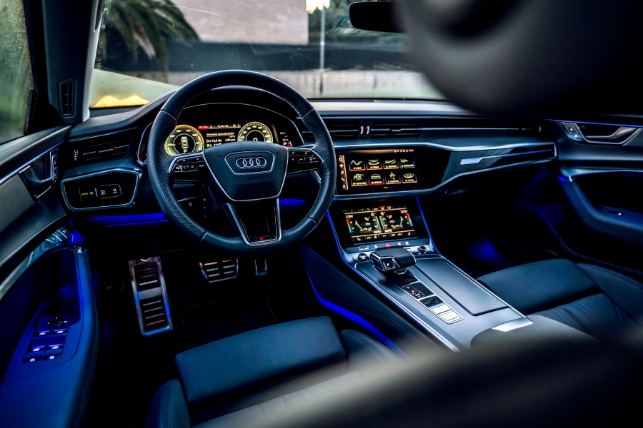 El habitáculo del Audi A7 combina un diseño minimalista con tecnología y materiales de alta calidad, creando un ambiente premium. Los asientos deportivos del paquete S line se adaptan al cuerpo y ofrecen numerosos ajustes eléctricos, además de funciones de calefacción, ventilación y masaje. El cuadro de instrumentos digital, denominado Audi Virtual Cockpit, cuenta con una pantalla Full HD de 12,5 pulgadas (1920 × 720 píxeles de resolución) que permite al conductor personalizar la visualización con tres modos: Classic, Dynamic y Sport.