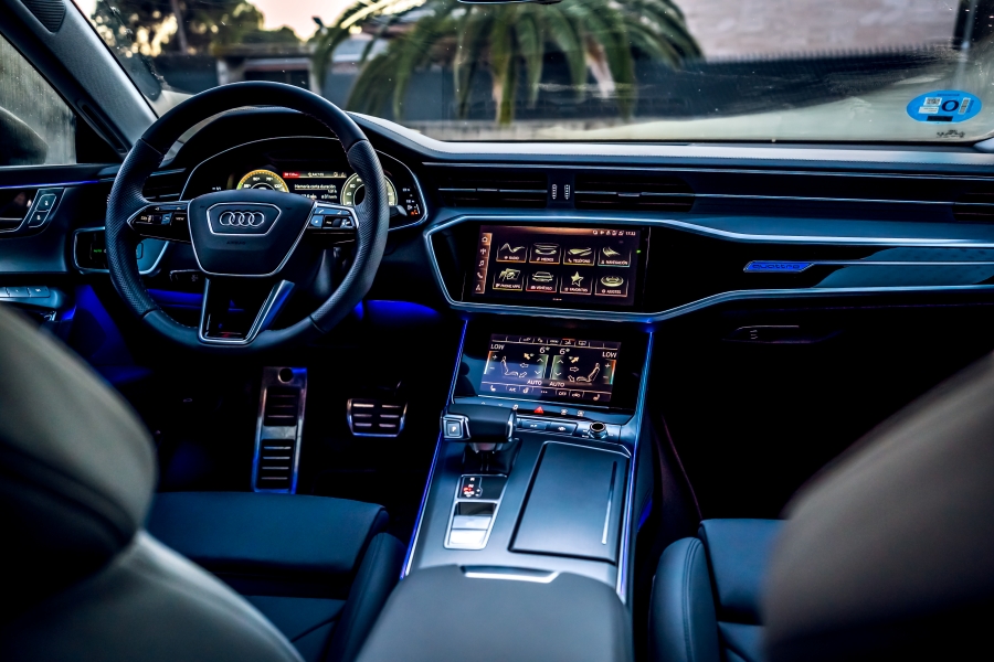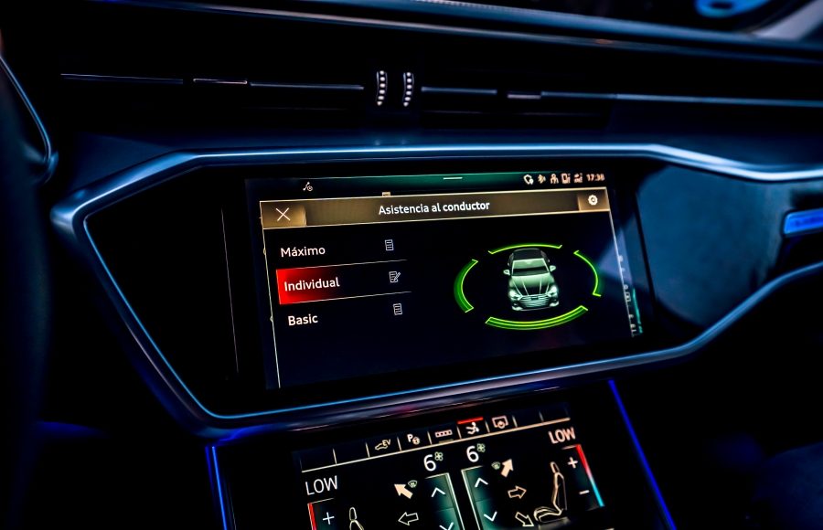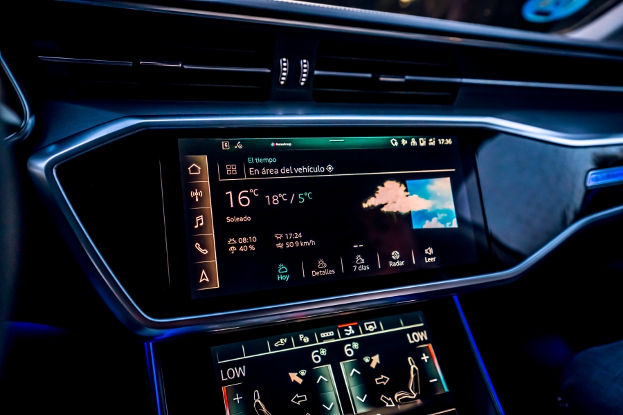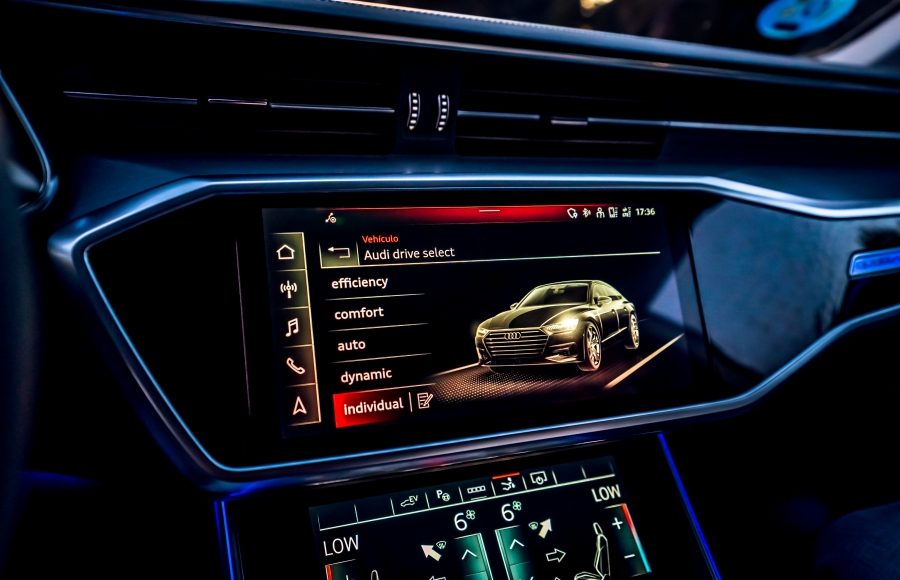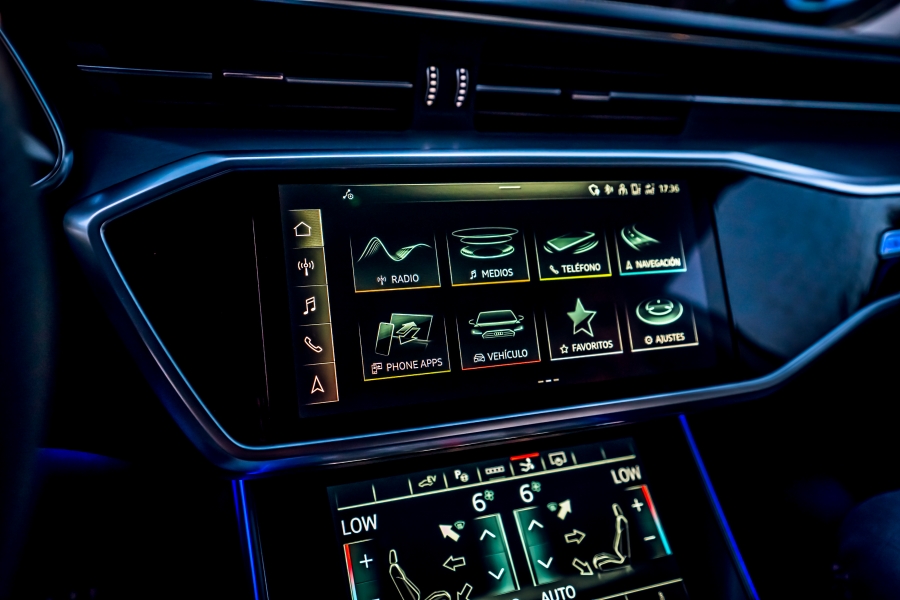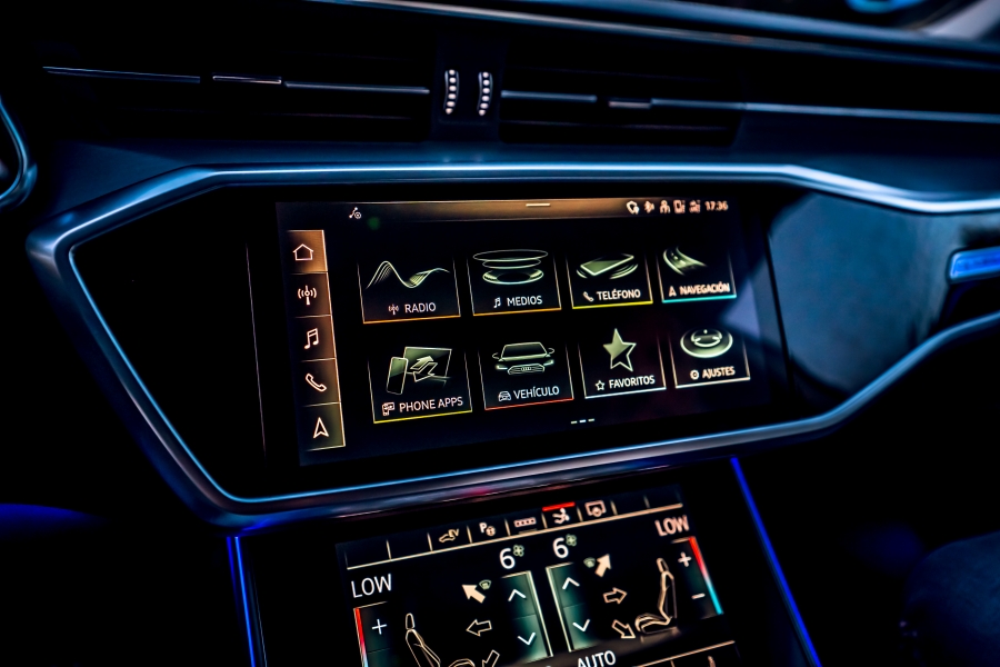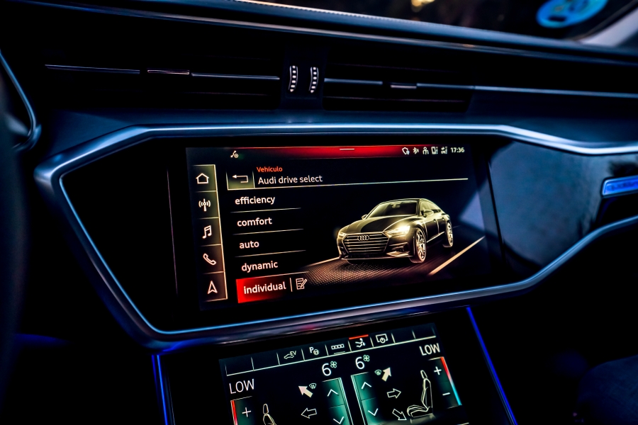 En la consola central se encuentra una pantalla de 25,6 centímetros (10,1 pulgadas) que se integra perfectamente entre las molduras gracias a su superficie negra brillante llamada «black panel». Desde esta pantalla se puede controlar el sistema de infotenimiento y configurar varios parámetros del A7. También es compatible con Android Auto y Apple CarPlay. El sistema de navegación MMI Navegación Plus ofrece rutas dinámicas para optimizar el consumo y cuenta con servicios en línea que facilitan la vida a bordo.