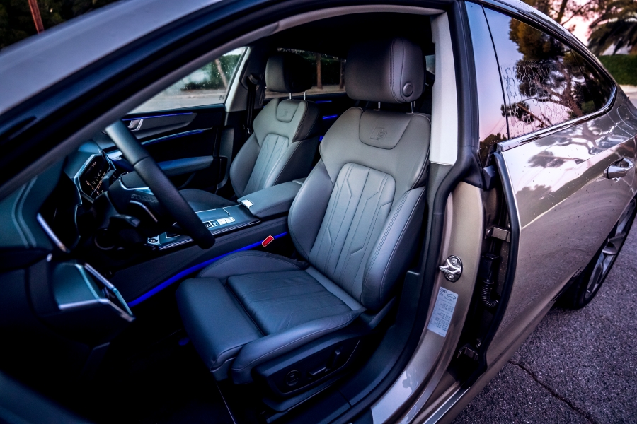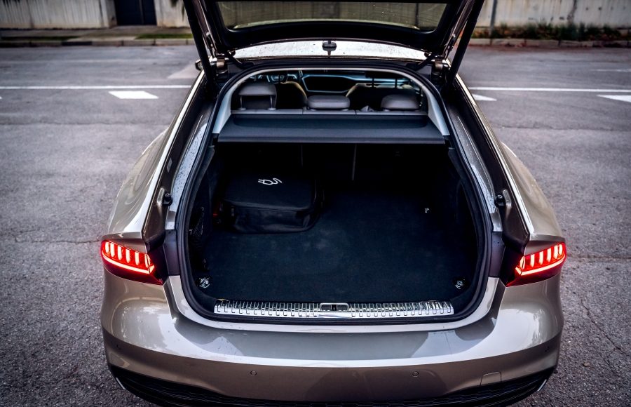 En las plazas traseras, hay espacio más que suficiente para tres personas, especialmente en los asientos laterales. Esta zona del coche cuenta con su propio sistema de climatización y los asientos pueden ser calefactados. El maletero tiene una capacidad de 380 litros, que es menor que los 535 litros de un Audi A7 convencional con motor de combustión y sistema mild-hybrid, debido a la ubicación de las baterías.