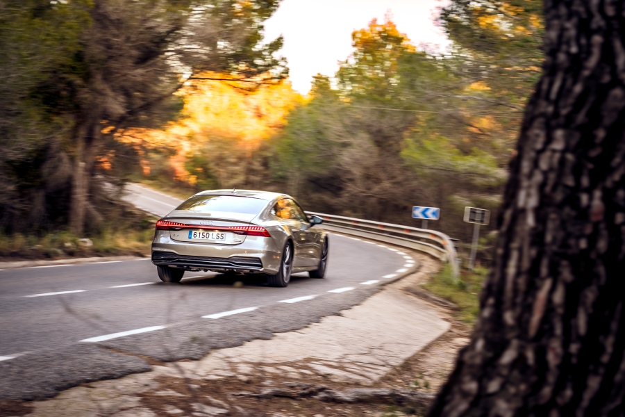 El arsenal tecnológico que equipa el Audi A7 está diseñado para proporcionar un paso por curva preciso y seguro, evitando movimientos innecesarios de la carrocería. El motor ofrece una buena respuesta desde bajas revoluciones y, gracias al sistema combinado de combustión y energía eléctrica, brinda una aceleración potente, similar a un «overboost». Además, la transmisión cambia de marcha de forma imperceptible en cualquier situación.