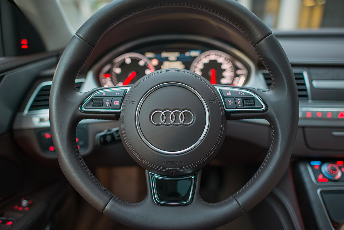 Abrimos la puerta, y dos sendos butacones te dan la bienvenida, en los que es muy fácil acomodarse, gracias a sus numerosos reglajes. Estos asientos cuentan además con calefacción, ventilación y diversas funciones de masaje. El volante de piel, tiene un tacto exquisito y la medida ideal, para conducir en circunstancias normales o en conducción deportiva. Es multifunción y lleva las levas integradas para poder manejar el cambio Tiptronic haciendo las delicias de aquellos a los que les guste disfrutar de algo más de sensación a la hora de conducir.
