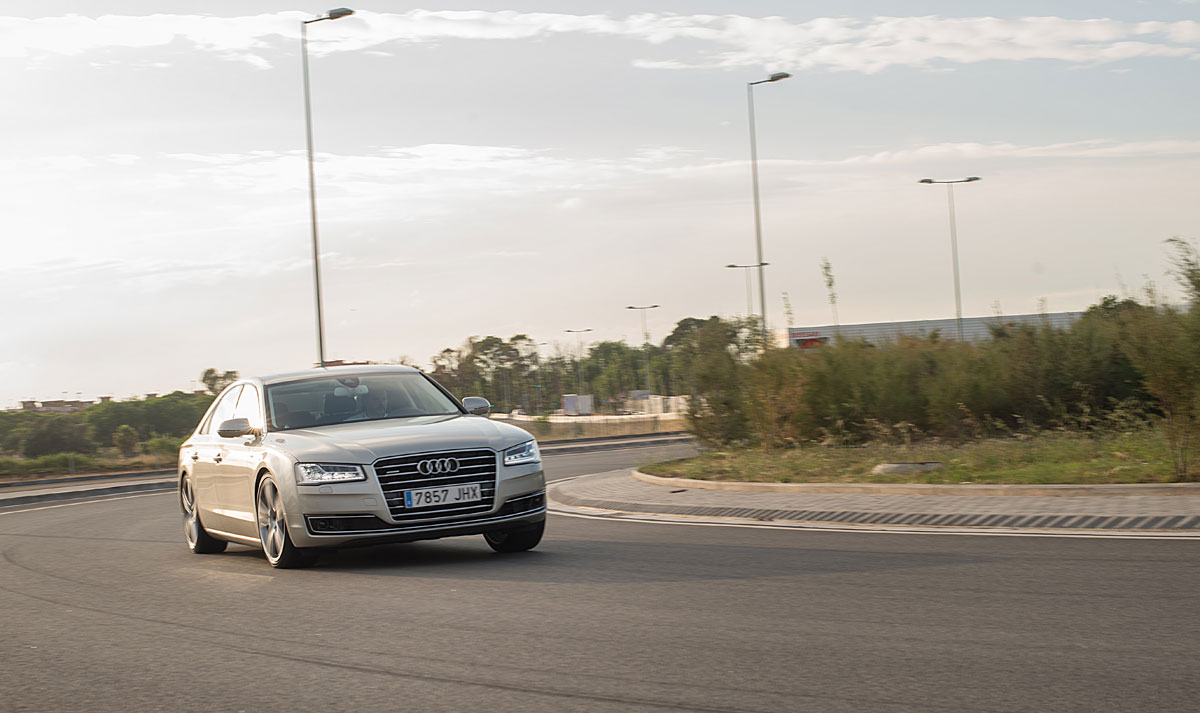 Tan solo en las curvas más cerradas y entrelazadas en donde se nota la magnitud del A8, pues las leyes físicas están ahí para todos y es normal percibir inercias al trazarlas. Aun así, tanto la tracción como el control de estabilidad y el diferencial deportivo heredado de la versión S8 son los encargados de velar por nuestra seguridad.