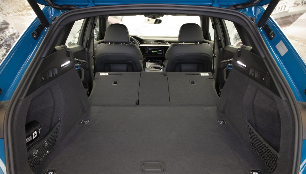 Volviendo al coche que ocupa estas líneas, el Audi e-tron, hablamos de un SUV a camino entre el Q5 y el Q7, que cuenta con unas medidas de 4,90 metros de largo y una anchura de 1,93 metros, con una capacidad para 5 ocupantes y un maletero de 600 litros de capacidad con posibilidad de ampliarse hasta los 1.725 litros, y otro pequeño huevo situado en la parte delantera bajo el capó, que permite dar cabida a unos 60 litros extra de capacidad.