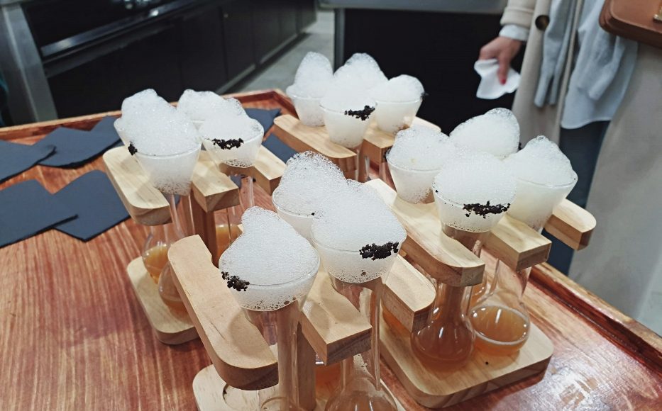 Como colofón a este evento, y tras conocer en una pequeña visita por Azurmendi los secretos de este impresionante edificio bioclimático, pudimos degustar un exquisito menú de 20 platos creado por el joven chef Eneko Atxa que acumula ya 3* Michelín, quien nos deleitó con una experiencia gastronómica en la que los cinco sentidos estuvieron a flor de piel durante nuestra estancia en Azurmendi.