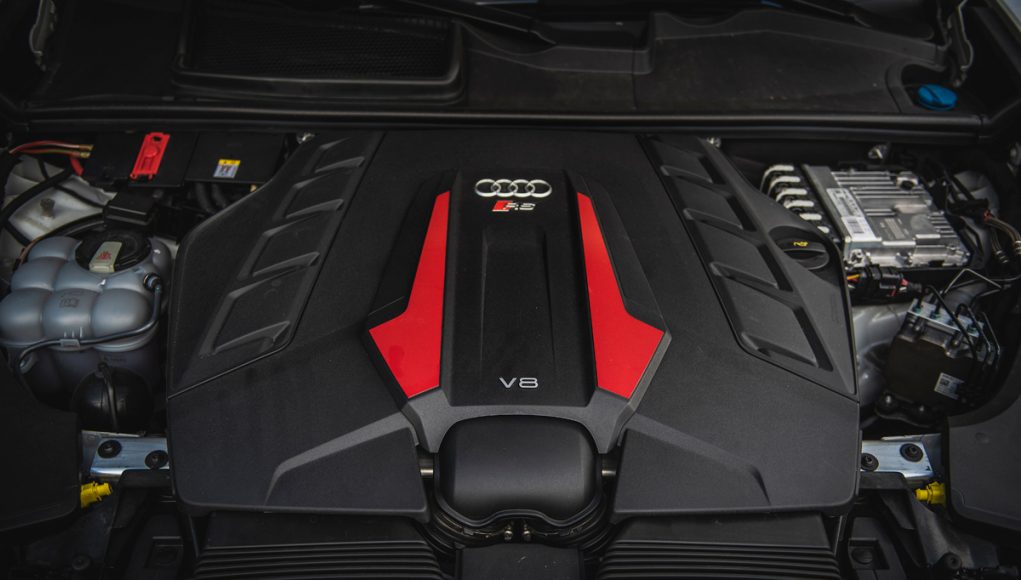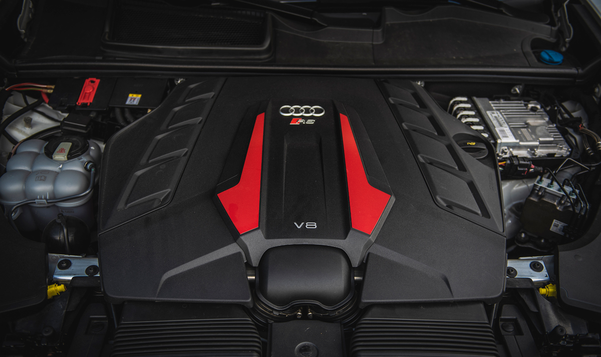 Bajo el capó delantero encontramos el mismo bloque que la marca utiliza en otros modelos bestiales, como el Audi RS6 o el RS7 Sportback, un motor V8 biturbo de 4 litros que rinde una potencia de 600CV a 6.000 rpm y 800 Nm de par entre las 2.200 y las 4.500 rpm. Está claro, que a un coche de este tamaño lo que le tiene que sobrar son bajos, y os aseguramos que el RS Q8 es explosivo ante de la inminente demanda del acelerador. Para asegurar y dosificar tanto la potencia como el par motor, está asociado a una caja de cambios ZF de 8 relaciones con convertidor de par, que está optimizada para ofrecer unos cambios rápidos y precisos en cualquiera de sus modos de conducción, así como al infalible sistema de tracción Quattro de Audi.