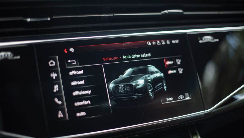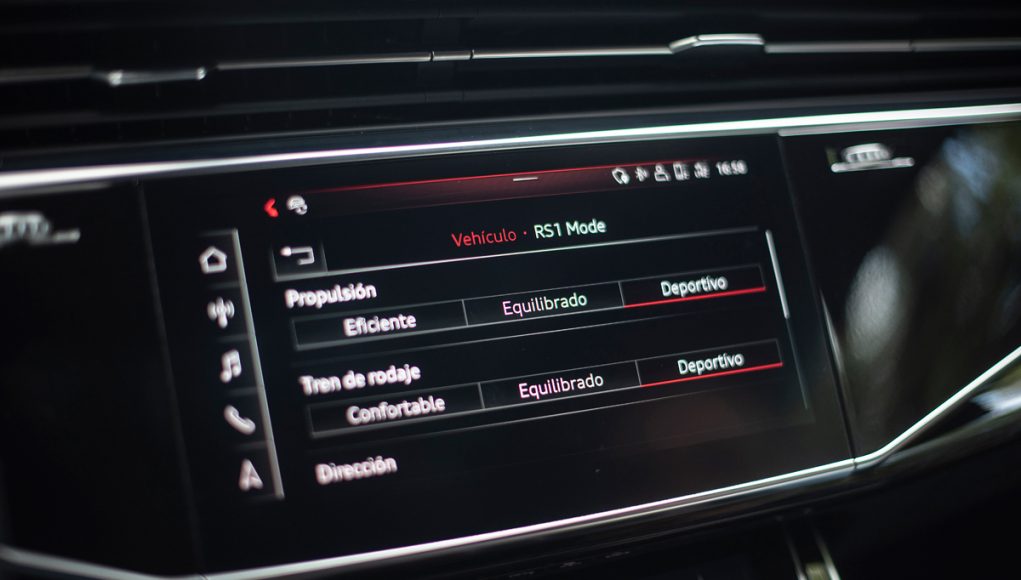 Para poder sacar un rendimiento óptimo ante cualquier circunstancia de conducción el Audi Drive Select del RS Q8 permite escoger entre 8 modos de conducción diferentes: RS1 y RS2, Efficiency, confort, auto, Dynamic, Allroad y offroad, quizás estos dos últimos destinados a algún propietario que sea capaz de meter el coche en nieve o barro.