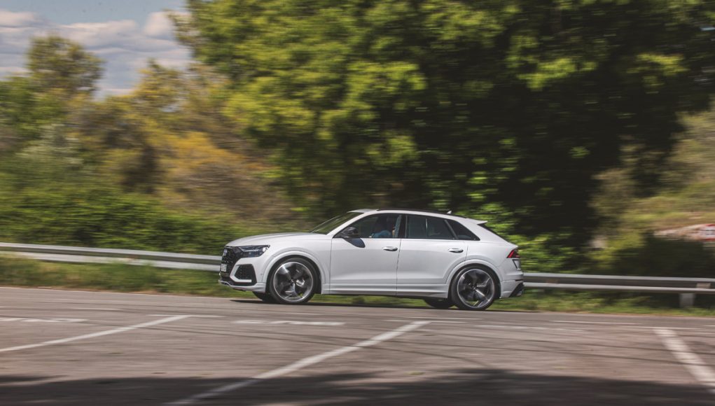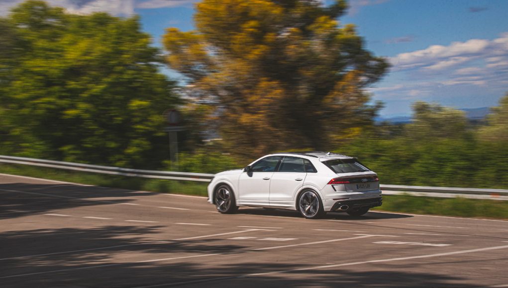 Desactivar la electrónica, o más bien, el control de tracción y de estabilidad en el RS Q8 es para osados o para pilotos, ya que es fácil ver como cuando tienes 600CV a plena disposición y el 87% del par motor empujando desde el tren trasero, puedes ir dibujando unos hilos negros con los neumáticos a la salida de las curvas. Si bien es un coche dócil con todo el arsenal electrónico conectado, cuando empiezas a coger confianza y desactivas algunas de estas “chuches”, conviertes a este SUV en un “gamberro” con ganas de liarla.