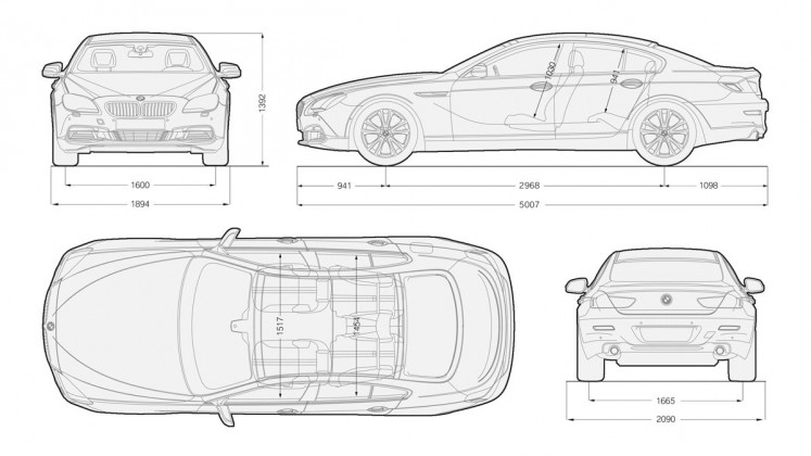 La parte frontal del Serie 6 es la más singular de este coupé, pues recuerda a la de un tiburón, rasgo que hereda la primera generación denominada E24. Su vista lateral es quizás la más bella y representativa de todas, pues es aquí donde se ve la magnitud de este coche. Con sus 5 metros de largo, una anchura de 1,8 metros y unos escasos 1,3 metros de altura, estamos frente a un deportivo de grandes dimensiones, que gana 113 milímetros con respecto a la versión coupé para dar cabida así a cuatro plazas en su interior y que dispone de un maletero de 460 litros de capacidad, con una gran profundidad hasta llegar a los respaldos de los asientos traseros que pueden ser abatidos para conferir entonces un espacio de carga de 1.265 litros.