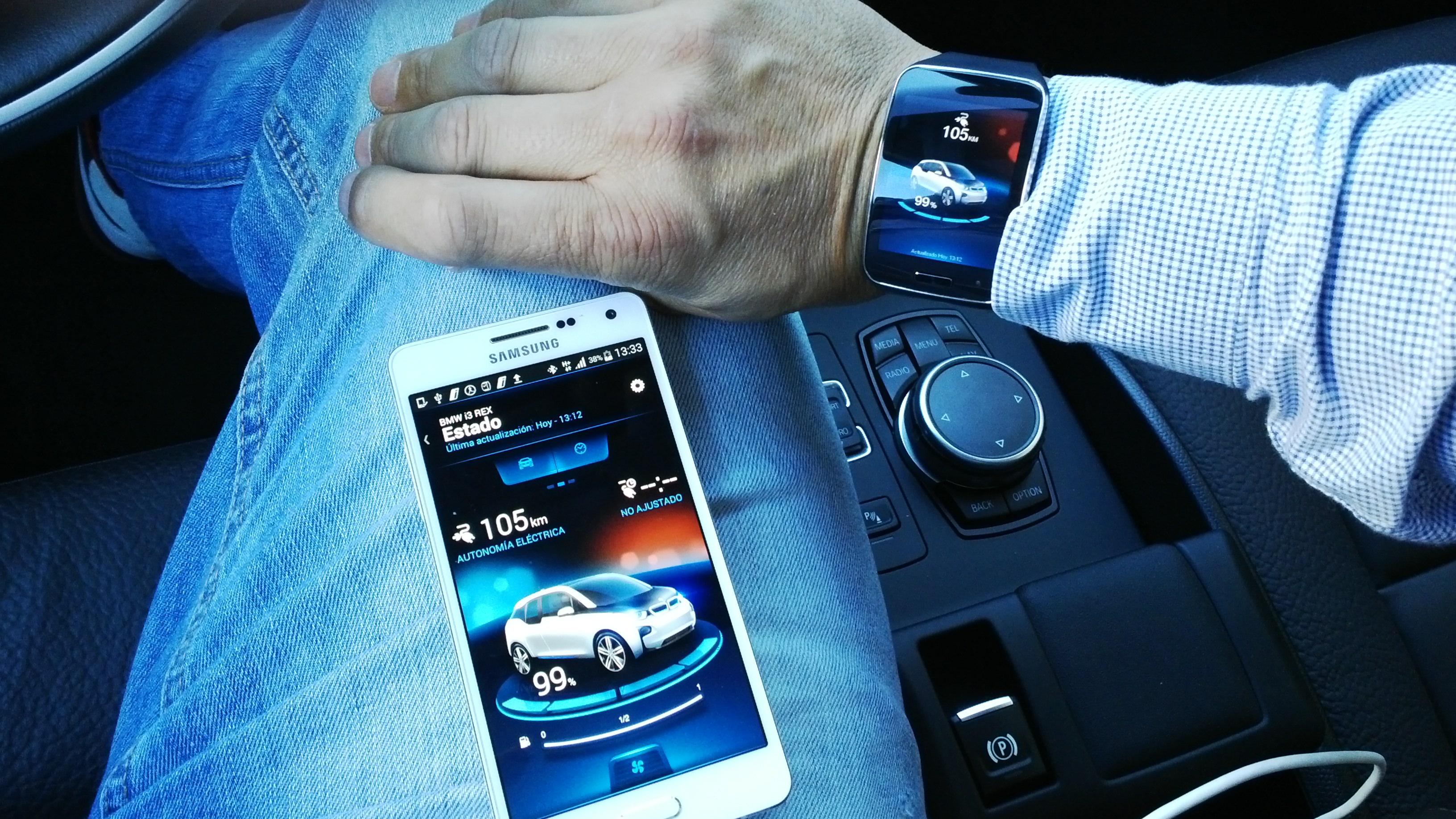 Como complemento para realizar nuestra prueba, el Departamento de Prensa de BMW, puso a nuestra disposición dos gadgets que te permiten literalmente estar conectados con el BMW i3 en todo momento. Uno de ellos es el teléfono Samsung Galaxy S6 Edge y el Reloj Samsung Gear S, que conectados con la aplicación BMW i Remote App para iOS y Android te ofrecen en todo momento información detallada acerca del estado actual de tu BMW i.