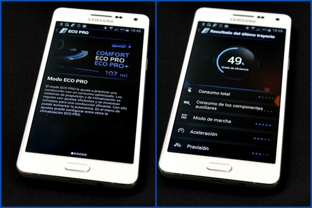 Desde el teléfono, conectándonos a esta aplicación, podemos ver en qué estado se encuentra la carga de la batería, la autonomía, así como podemos programar horas de carga y de salida o la calefacción para cuando lleguemos por ejemplo al coche en invierno ya esté calentito en su interior. Es posible también, acceder a un menú que nos permite una conexión directa con el coche, por lo que podemos encender las luces o bien tocar el claxon para espantar a los más curiosos.