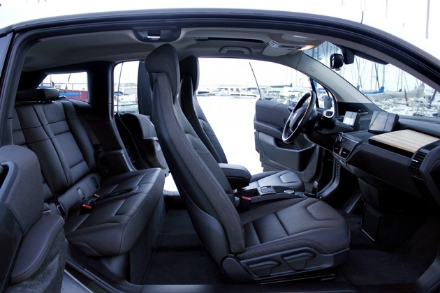 Su carrocería es de fibra de carbono reforzado con plástico y aluminio, con lo que se ha conseguido contener hasta los 1.390 kg el peso total del coche sin mermar su rigidez. Además esto ha permitido a la marca, reducir el proceso de fabricación con respecto a un coche fabricado en acero.