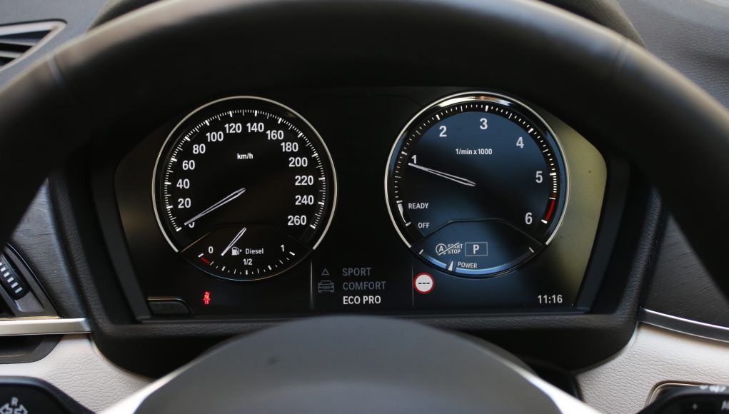 Nuestra unidad de pruebas era la variante xDrive 18d, con motor de 4 cilindros y 2.0 litros con tecnología Twin Power Turbo, que desarrolla una potencia de 150 CV al tren delantero y dispone de una caja de cambios Steptronic de doble embrague y siete velocidades.