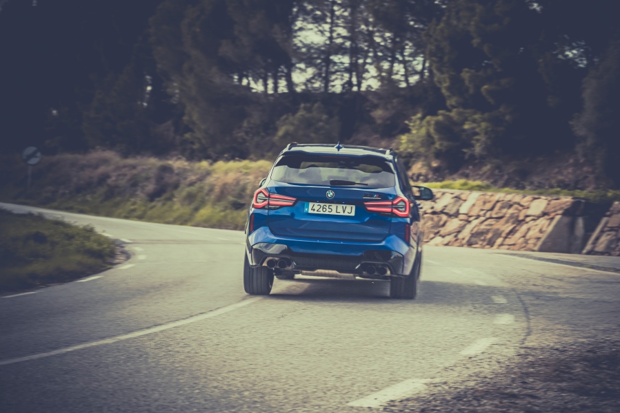Para que hagáis una idea de lo rápido que es este X3 M Competition os diremos que acelera de 0 a 100 km/h en tan solo 3,7 segundos, o lo que es lo mismo, es una décima más lento que el BMW M4 Competition, teniendo en cuenta que pesa alrededor de 400 kg más. Otra cifra importante es que precisa de 13,3 segundos para lanzarse hasta los 200 km/h, siendo una décima más lento que el X6 M, que desarrolla 625CV. Así que podeis imaginar que este coche ha sido concebido para los amantes de los ///M de BMW y que no renuncia por el hecho de ser un SUV o un SAV a la dinámica que los BMW con el apellido ///M nos tienen tan bien acostumbrados.