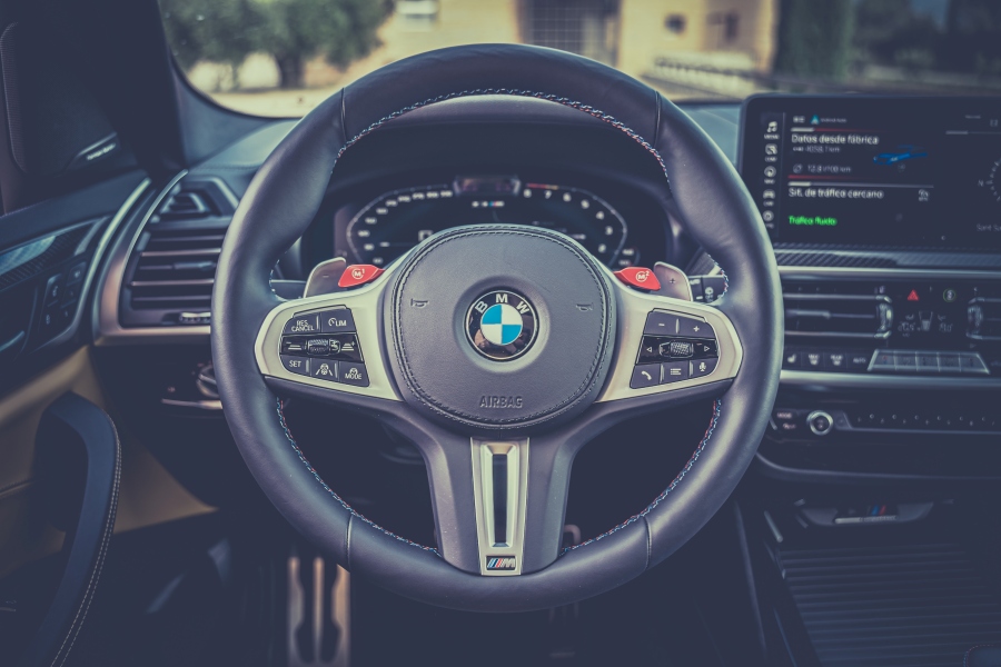 Piel en combinación con el carbono, esto es lo que ofrece nuestra unidad de pruebas. El volante está envuelto en este agradable material, y como siempre diremos tiene un diámetro y grosor perfectos. En él, encontramos sendos botones para de manera inmediata acceder a los modos de conducción M1 y M2, que son totalmente personalizables, desde la pantalla táctil.