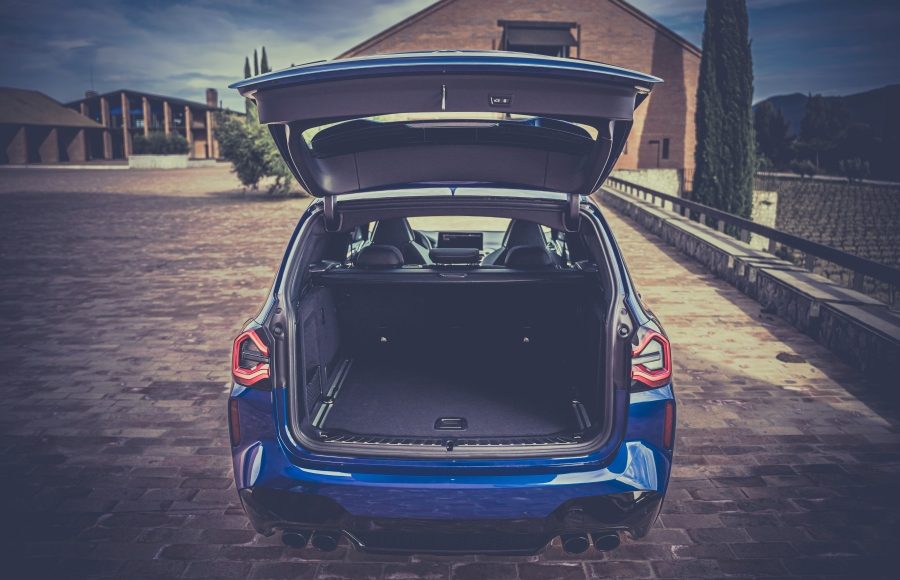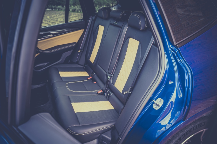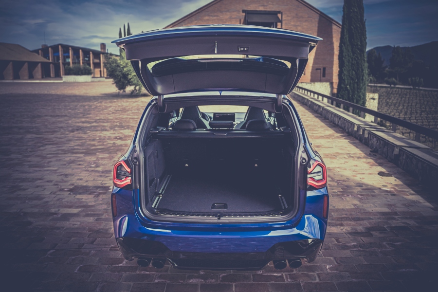 La parte trasera del BMW X3M, está configurada para dar cabida a tres ocupantes, claro está, que el de la plaza central no irá sentado tan cómodo como el de los laterales, pues esta plaza además de ser un poco más dura que las otras dos, encuentra a sus pies el enorme túnel de transmisión. Personalmente creo que un SUV de estas características, debería dar la opción egoísta de que en la trasera se pudiera optar por una configuración de dos asientos individuales, como los delanteros. El maletero por su parte dispone de 550 litros de capacidad que pueden ser ampliados hasta los 1.500 litros abatiendo los asientos traseros.